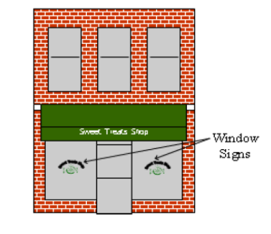 Incidental sign: A small sign, emblem, or decal informing the public of goods, facilities, or services available on the premises. Examples of incidental signs include credit card signs, signs indicating the hours of business, no smoking signs, signs used to designate bathrooms, and signs providing information on credit cards and business affiliations.