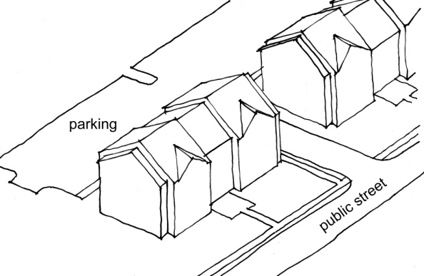 Not more than two parking spaces are permitted forward of the front building line.