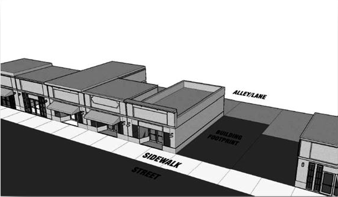 Rear building setbacks of the zoning district may be reduced by up to five feet from the established minimum.