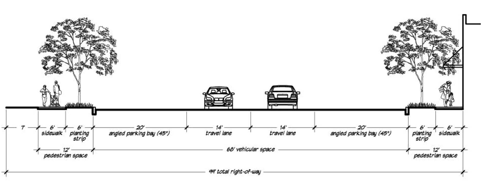 The specifications for the road right-of-way to be dedicated will be as described in chapter 30, pertaining to subdivisions, for local streets, or as may be modified by the City Planning Commission during the process of site design and architectural review for the proposed residential infill project. Any right-of-way dedicated for purposes of this required connector road may be included in calculations of maximum density permitted for the proposed residential infill development project.