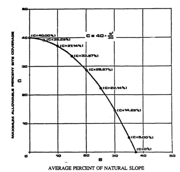 The maximum allowable land coverage for any development within the Hillside Preservation District shall be controlled by the following formula: