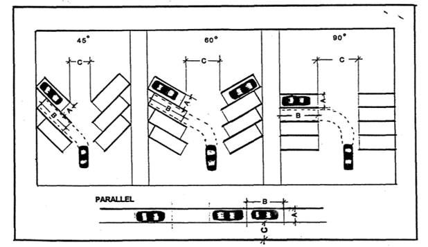 *** The length of the end stall in a row of parallel spaces may be reduced to twenty (20) feet.