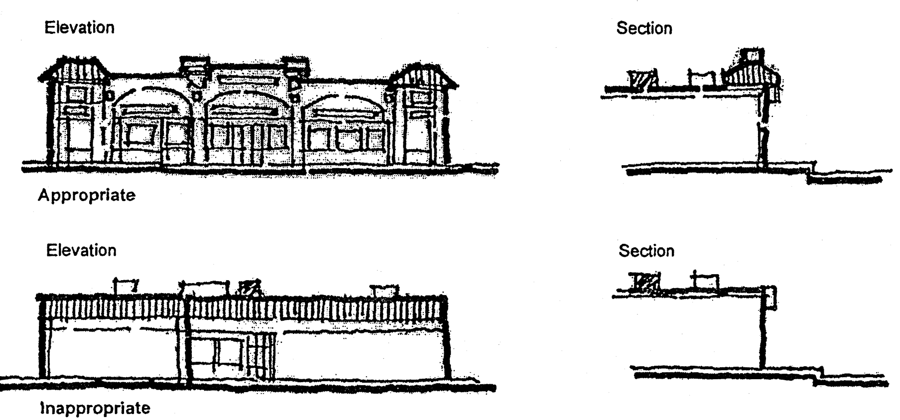Building and accent light fixtures shall not be installed above the roofline directly above the light fixture.