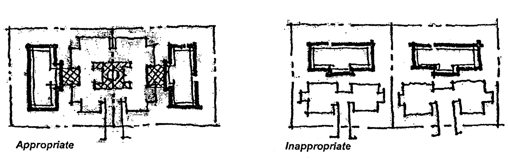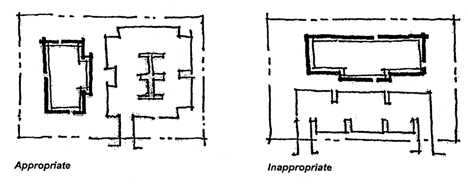 Accessory structures, such as private garages or other similar structures having vertical walls, may be located on or attached to the side or rear of a principal structure, provided all minimum setback requirements are maintained.