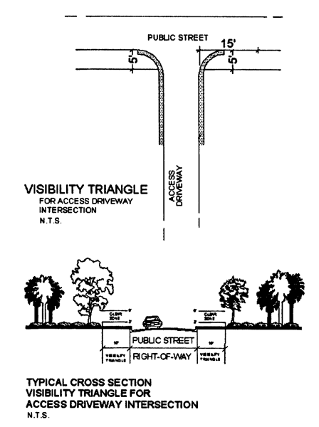 Project access point minimum distances from the street right-of-way to an interior service drive or parking space shall be as follows or as determined by the city engineer: