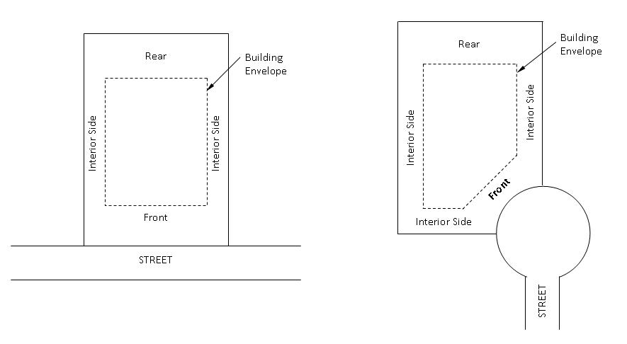The rear yard setback typically runs parallel to the front yard setback and does not connect to the front yard setback.
