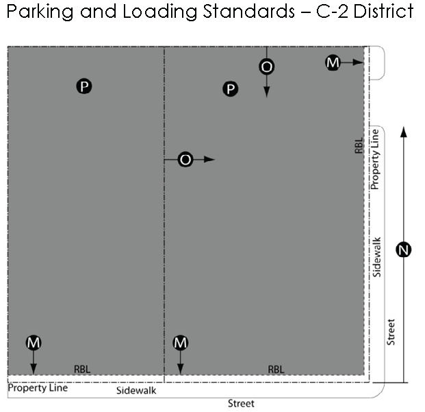 Permitted Use (P). Land and/or buildings in this district may be used by right.