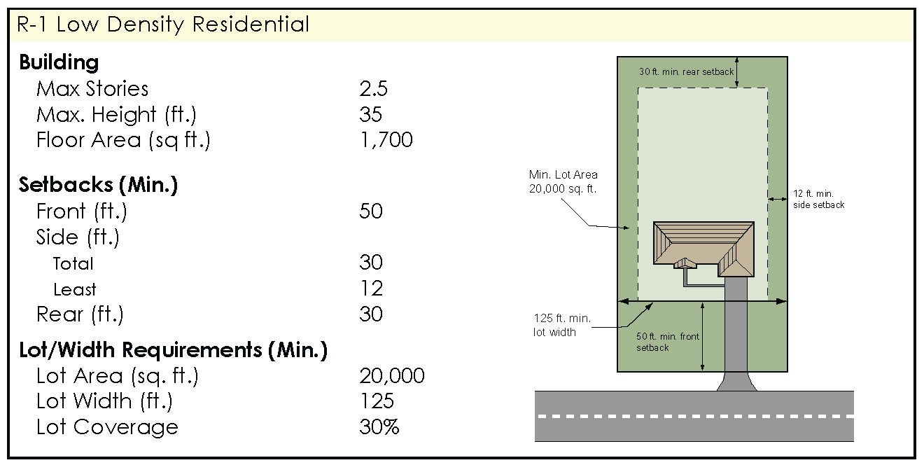 "R-1," Low Density Residential District. The R-1 District is intended to accommodate new residential subdivision development at densities of less than two units per acre, along with related uses generally on the periphery of the more intensely urbanized sectors of the city. Land within this district will be served by public sanitary sewer and water facilities.