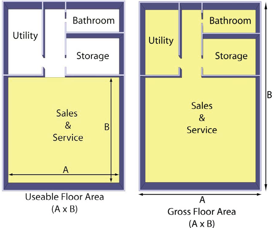 Floor area, usable. That area to be used for the sale of merchandise or services, or for use to serve patrons, clients, or customers, measured from the interior faces of the exterior walls. Areas used principally for the storage or processing of merchandise, for hallways, stairways, and elevator shafts, or for utilities or sanitary facilities shall be excluded from this computation.