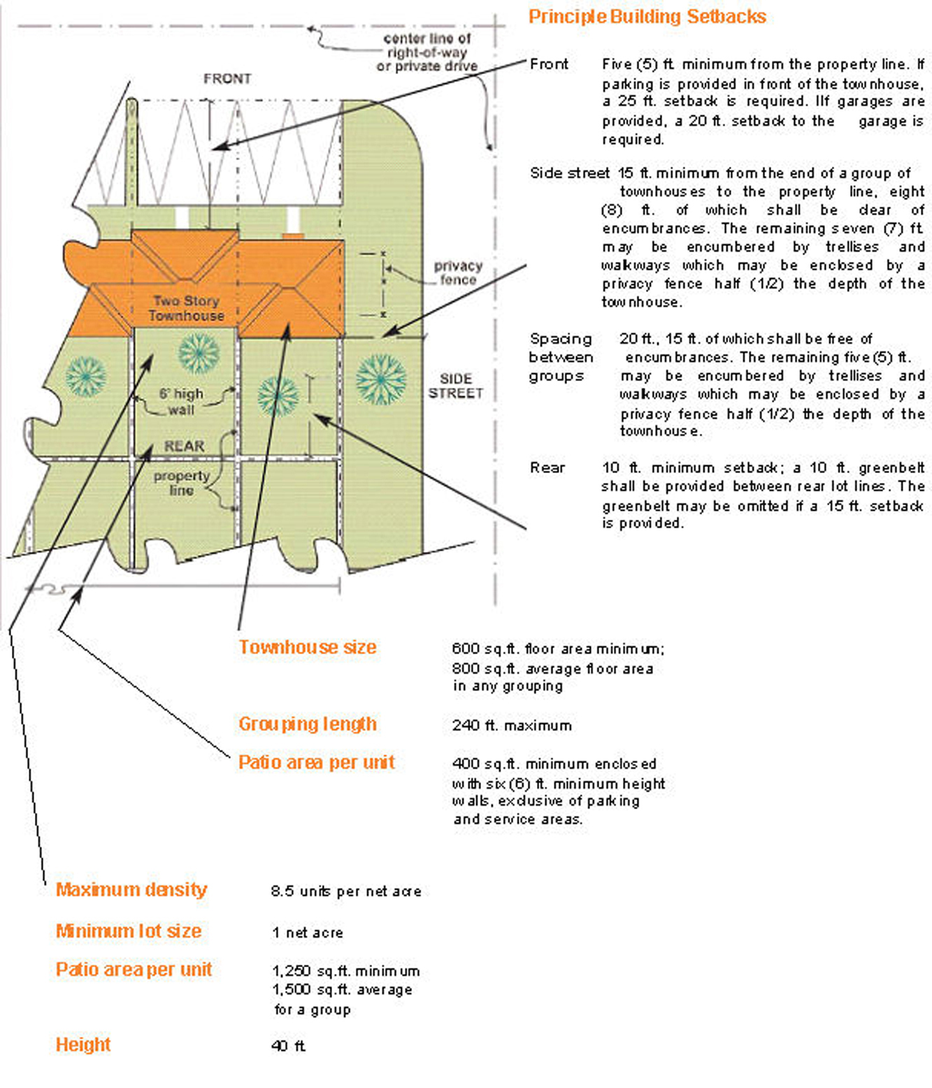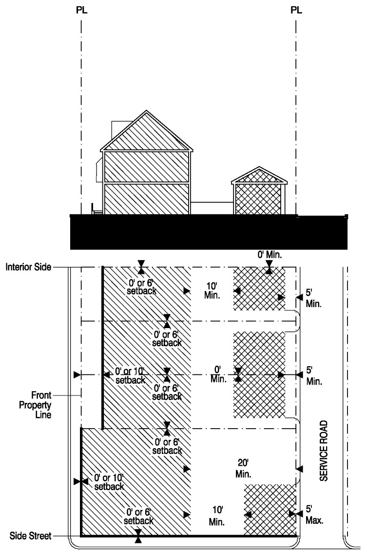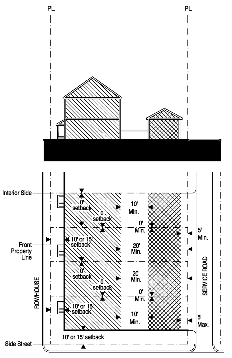 From right-of-way pavement, 60 feet;