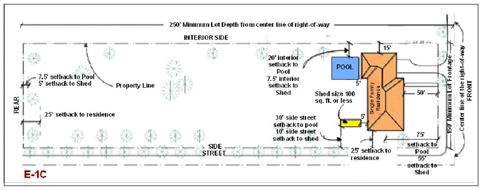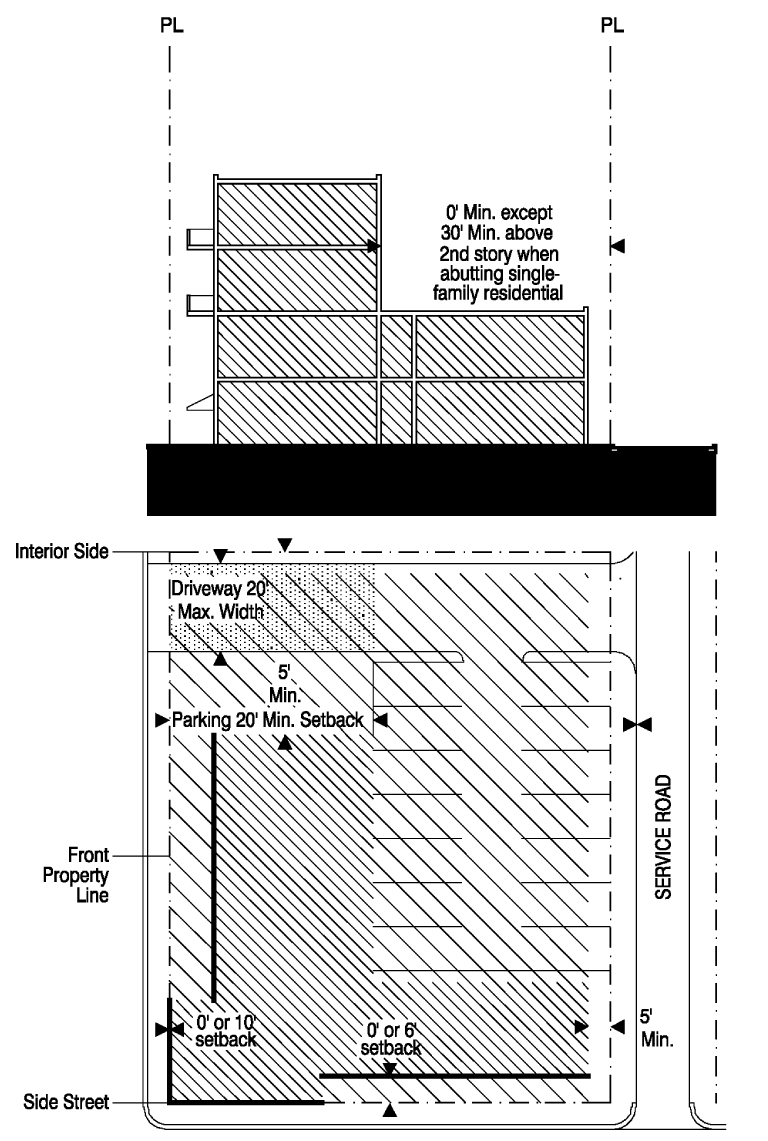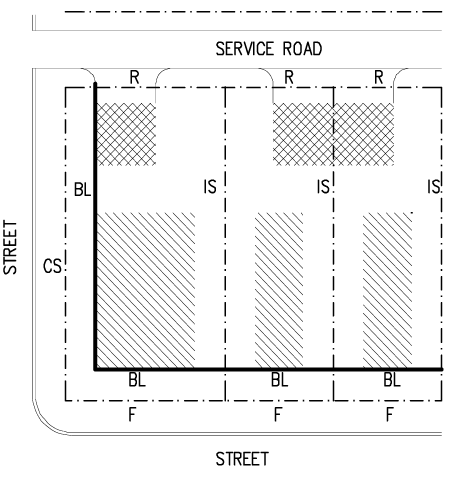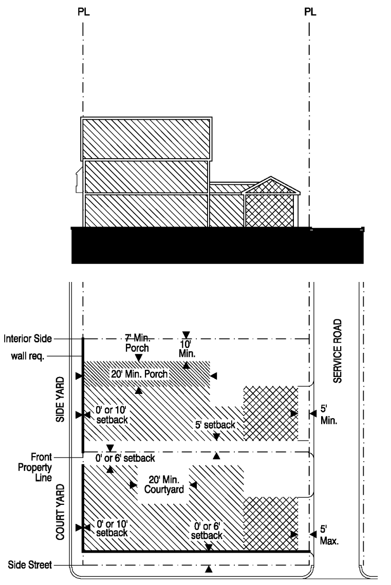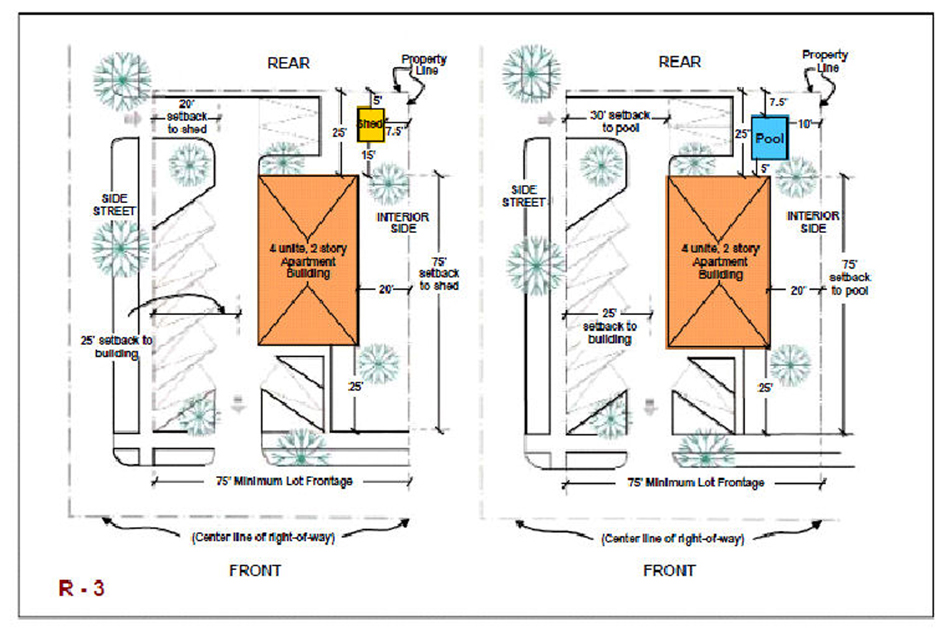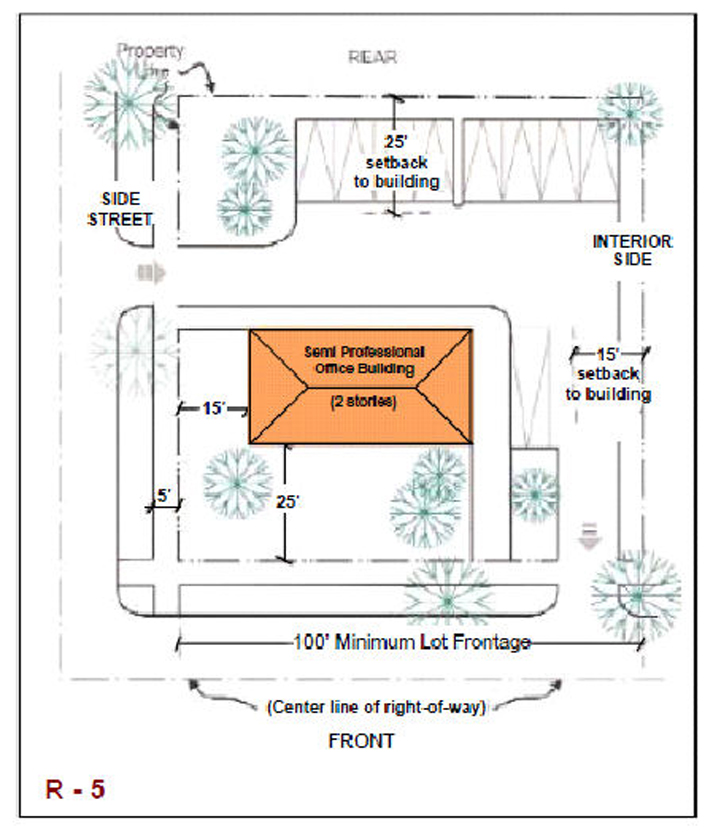 From side street property line, 25 feet; and