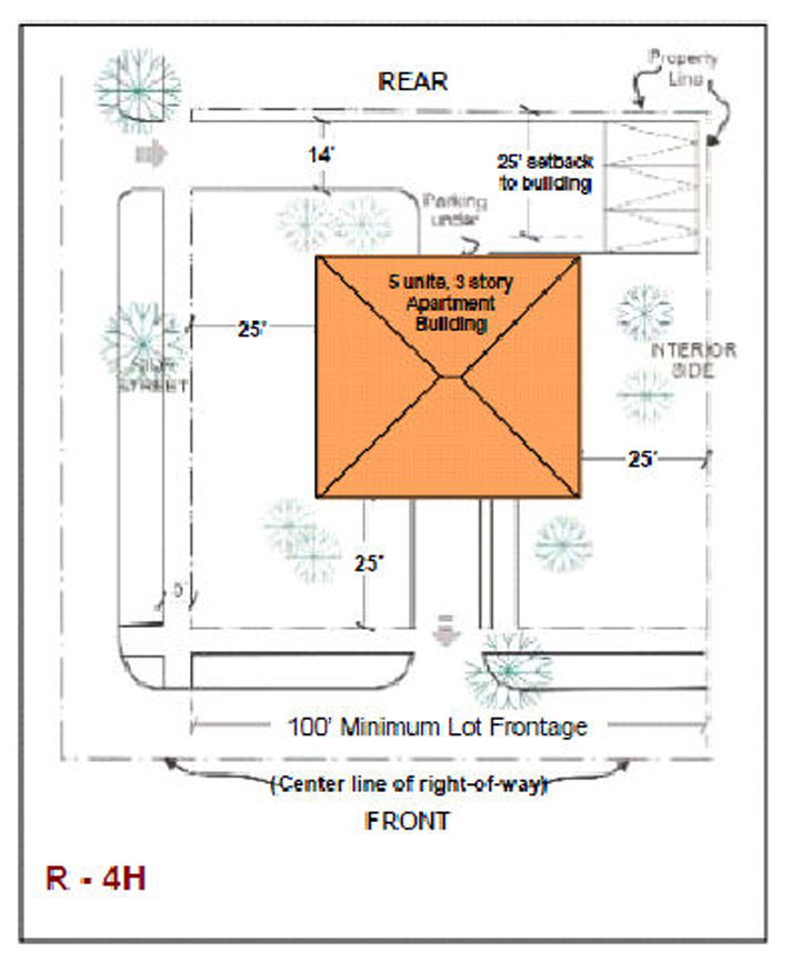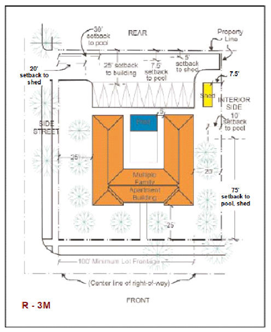 From interior side property line, 100 feet.