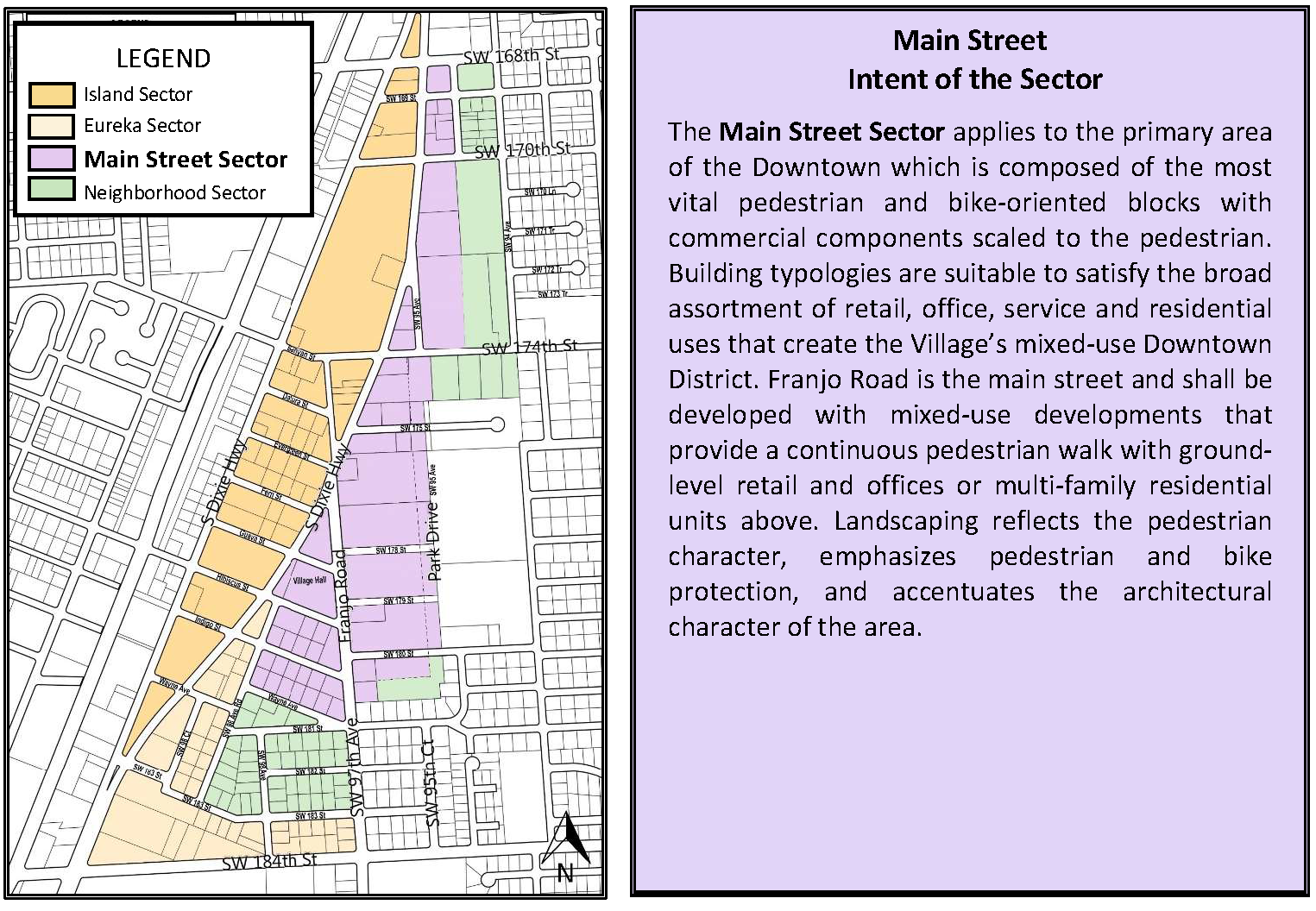 The purpose of the zoning districts is to implement a comprehensive plan for the village development. The zoning districts designate the maximum density and intensity that may be developed within the respective districts based upon the comprehensive plan and consists of the following: