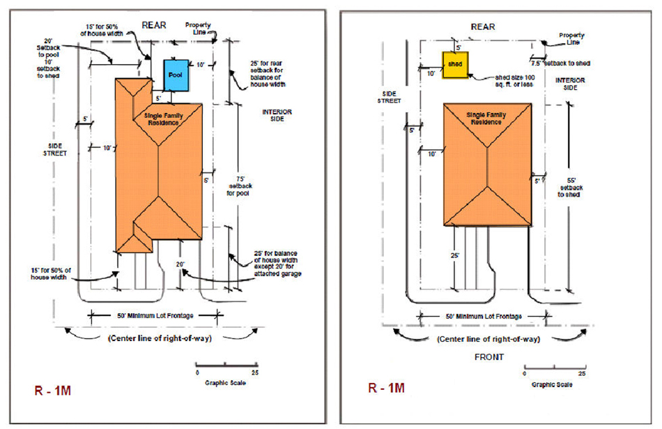From rear property line, 25 feet;