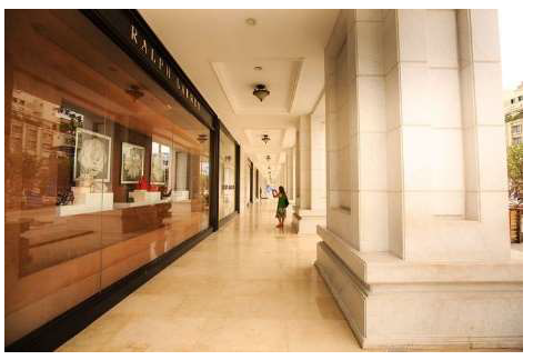 Location of each sign on the buildings;