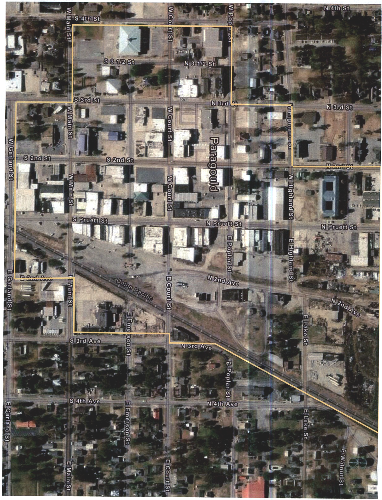 The boundaries of said downtown architectural district shall be as follows: Beginning at the corner of south 3rd Street and West Garland Street going to the intersection of south 3 rd Street and West Main Street. From this point on West Main Street going west to south 4 th Street. On south 4 th Street going north to the intersection of south 4 th Street and West Poplar Street. The district continues east on West Poplar Street to North 3 rd Street then going north to West Highland Street. Going one block east to North 2 nd Street then the district goes north to West Hunt Street. From the intersection of North 2 nd Street and West Hunt Street, the district goes east to the Railroad tracks and follows the line south until 3 rd Avenue. The district then follows North 3 rd Avenue south to East Main Street. At this point, the district line goes West along Main Street to the intersection of South 2 nd Avenue. At this intersection, the district goes south on South 2 nd Avenue to East Garland Street. From here, the district returns to the original starting point going West on Garland Street to the intersection of West Garland Street and South 3 rd Street.