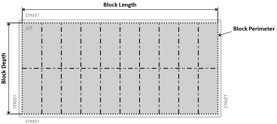 Blocks. The following standards apply to block design and layout. Refer to Figure X-2-A. Maximum Block Length and Size.