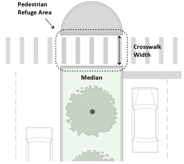 Mid-block pedestrian crossings shall be provided across the right-of-way for all blocks longer than 800 feet and shall be located at the approximate center of the block.