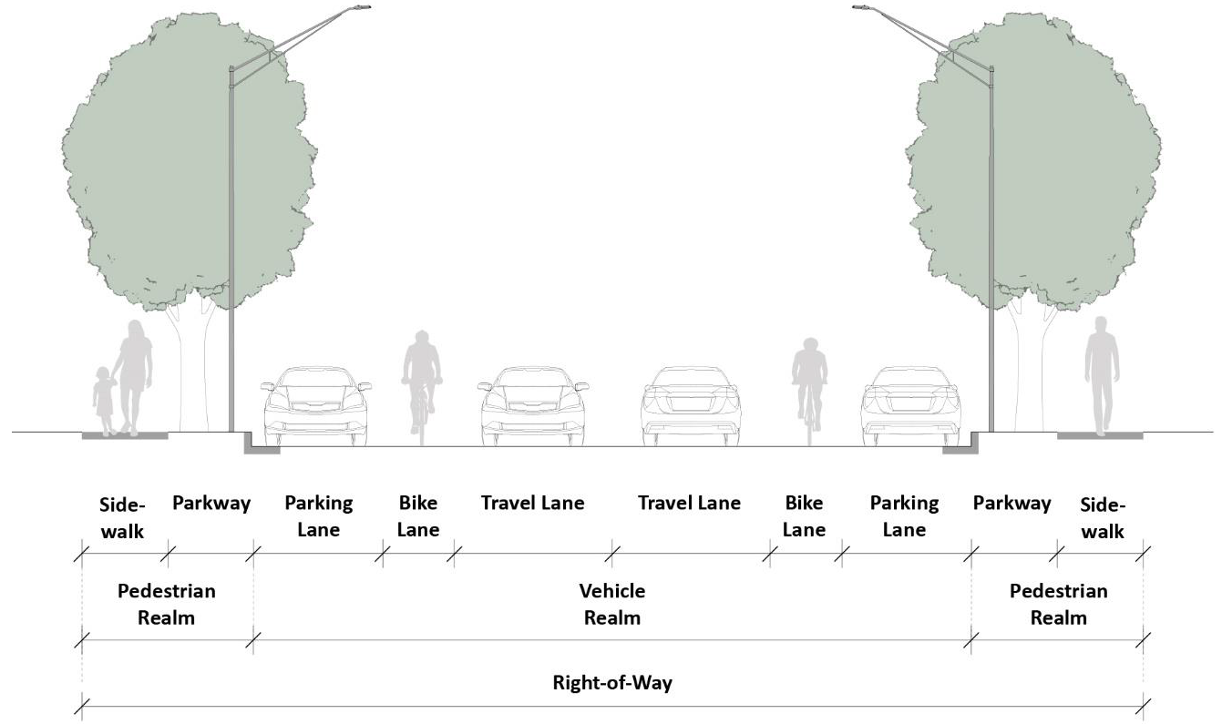 General Requirements. All proposed streets, parkways, and sidewalks shall be located in dedicated rights-of-way as required by this Article.