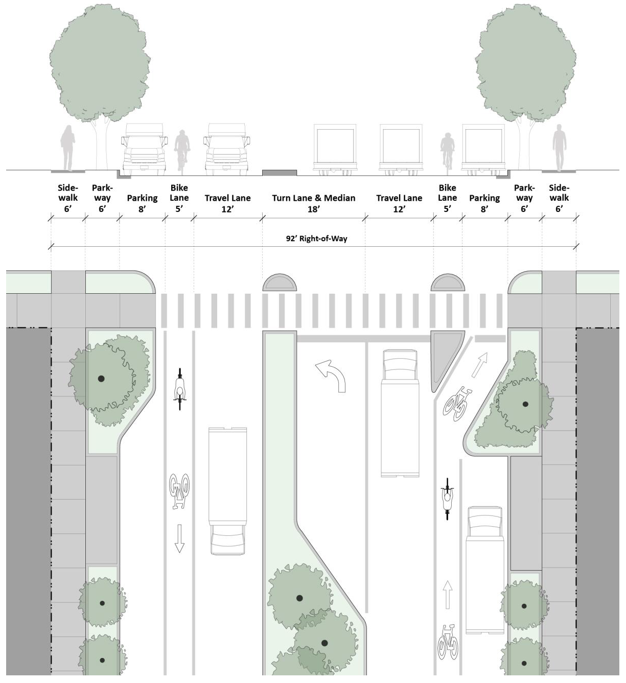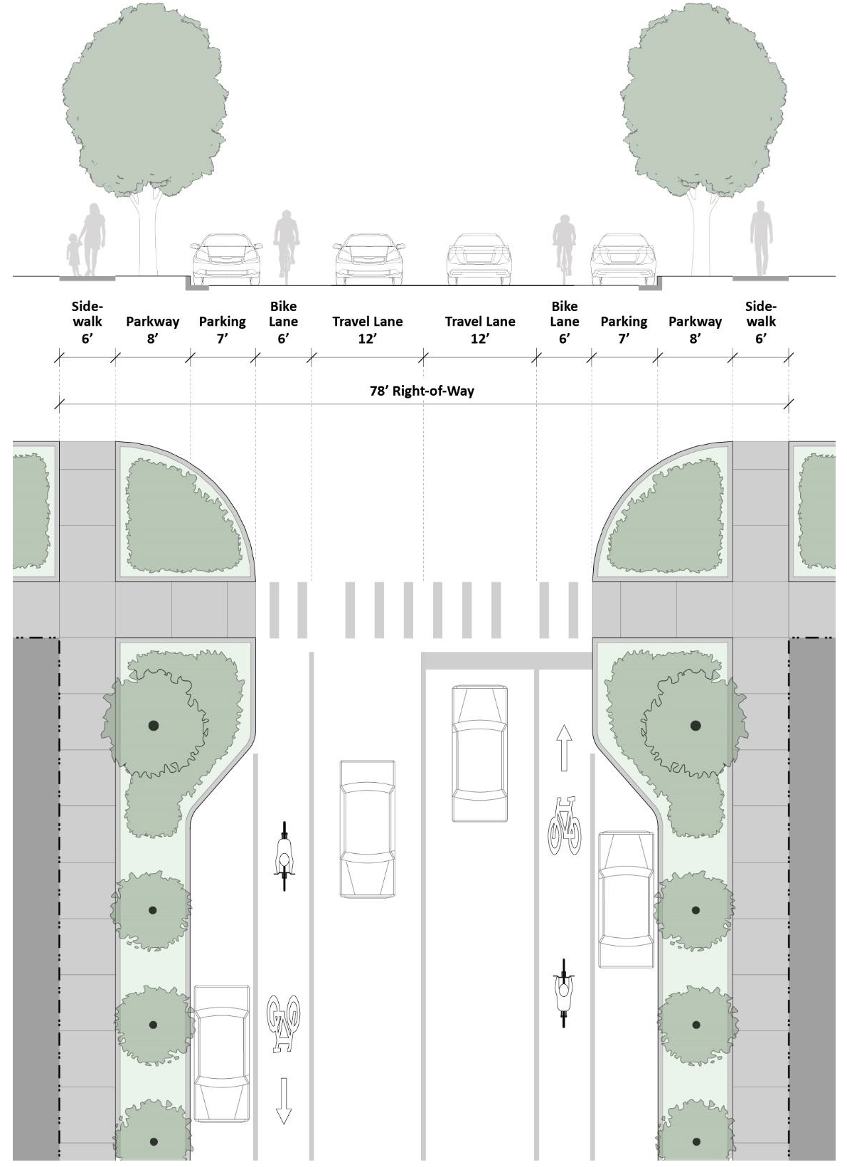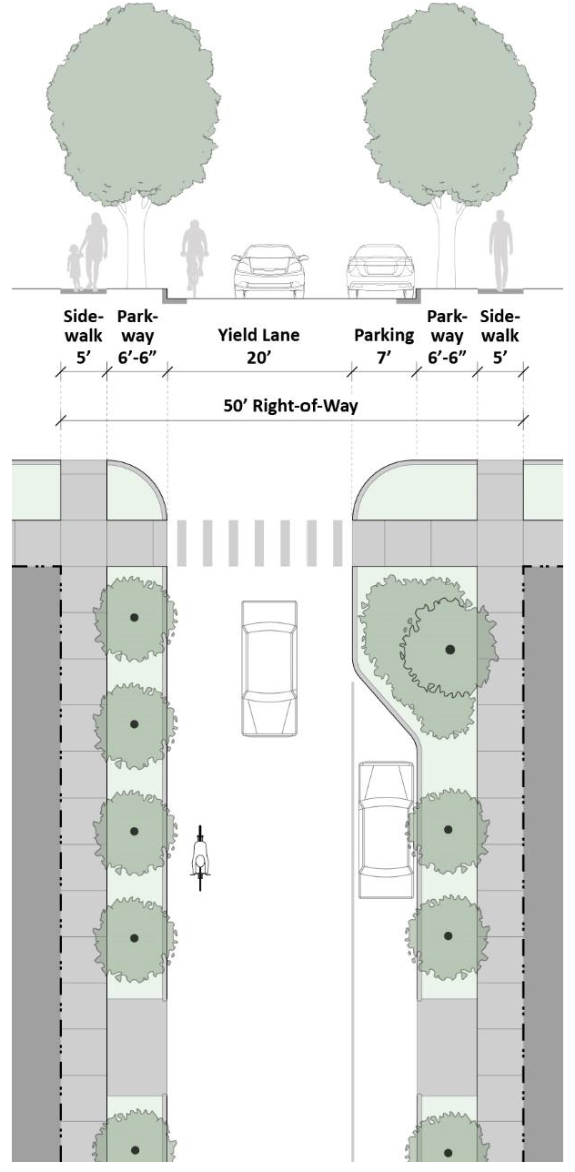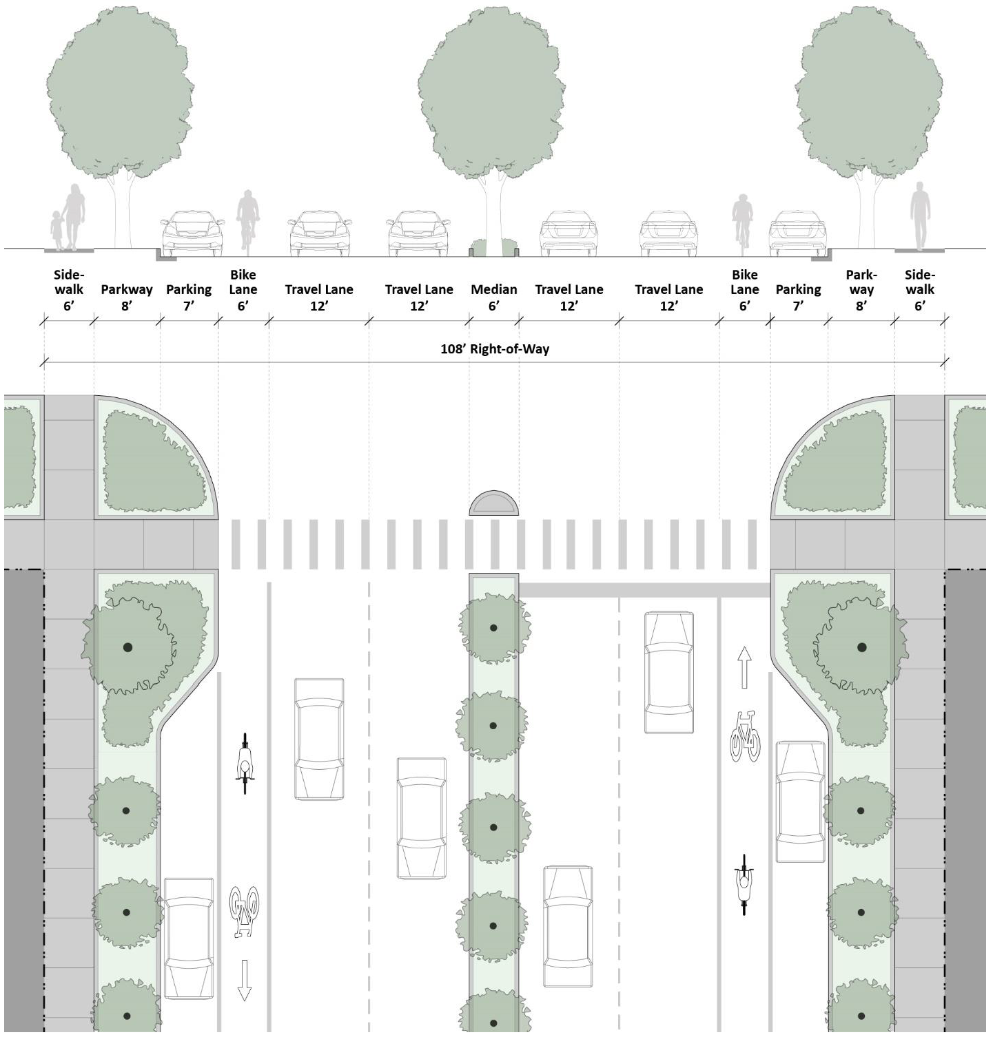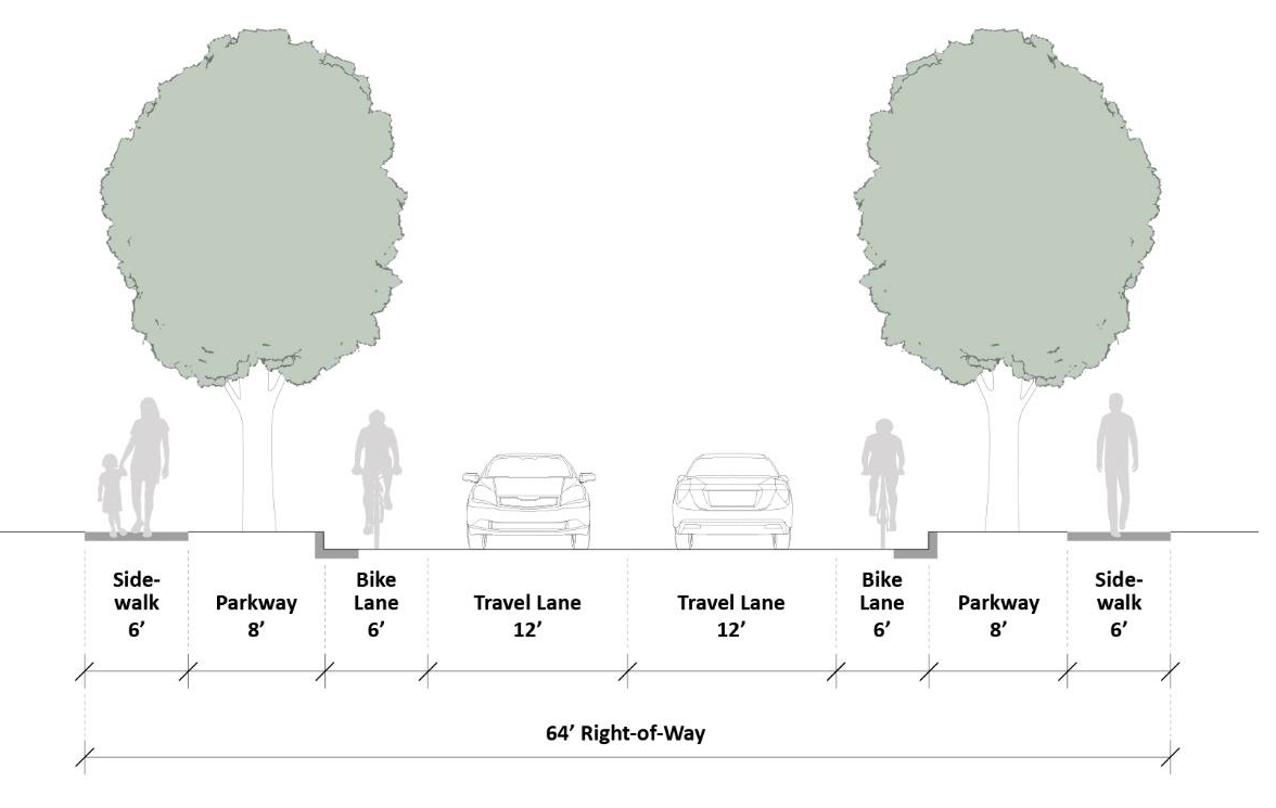 It is preferred that blocks have a maximum length of 800 feet to facilitate walkability.