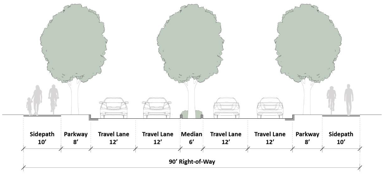 Typical and Alternative Street Types. Typical and alternative versions of Avenue, Industrial, and Neighborhood Streets are designated in § X-3.D.2 (Street Type Design Standards), which provide several acceptable configurations for each respective street type.
