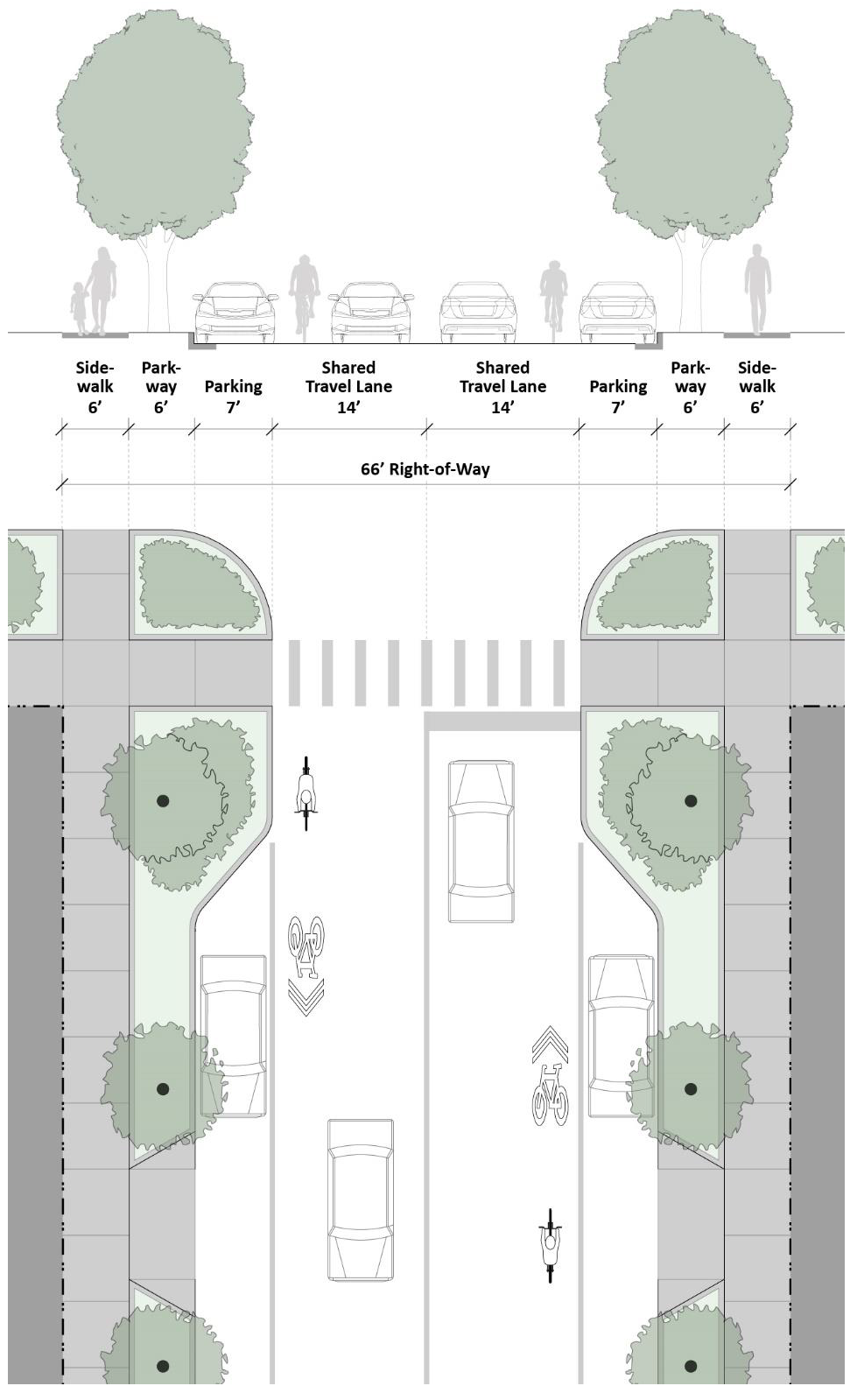 Create streets that are appropriate for their contexts and are designed to encourage travel at appropriate volumes and speeds.