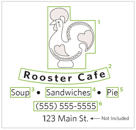 Limitation. No sign face shall include more than six items of information, except as provided in this section. Each of the following items is considered one item of information: business name, business logo, telephone number, website, slogan, and products or services offered. If the sign advertises products or services, each product or service is considered one item of information. The following exceptions apply: