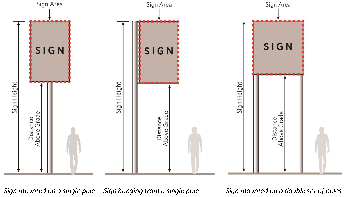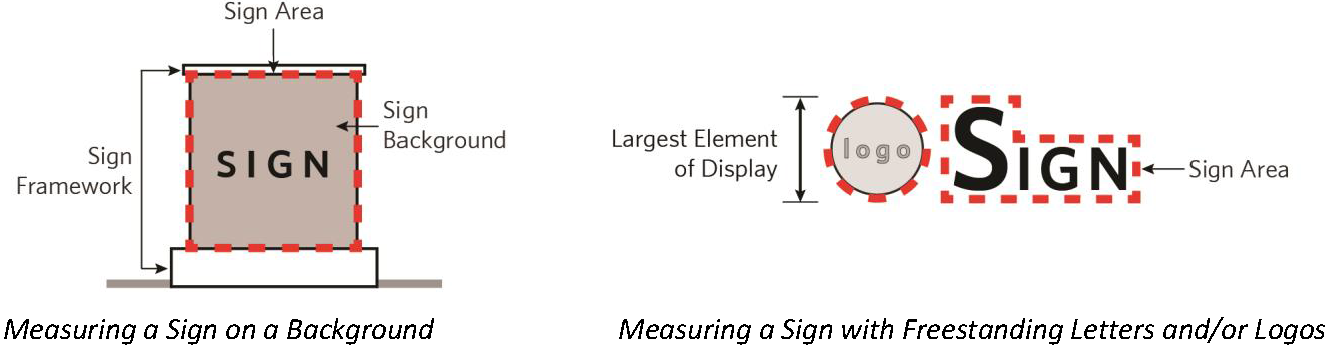 Measurement of Sign Area. Refer to Figure VII-3-A. Sign Area Measurement and Figure VII-3-B. Measurement for Signs with Multiple Faces.