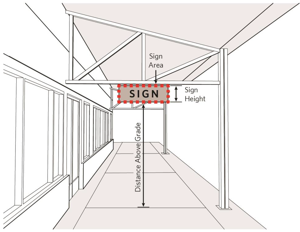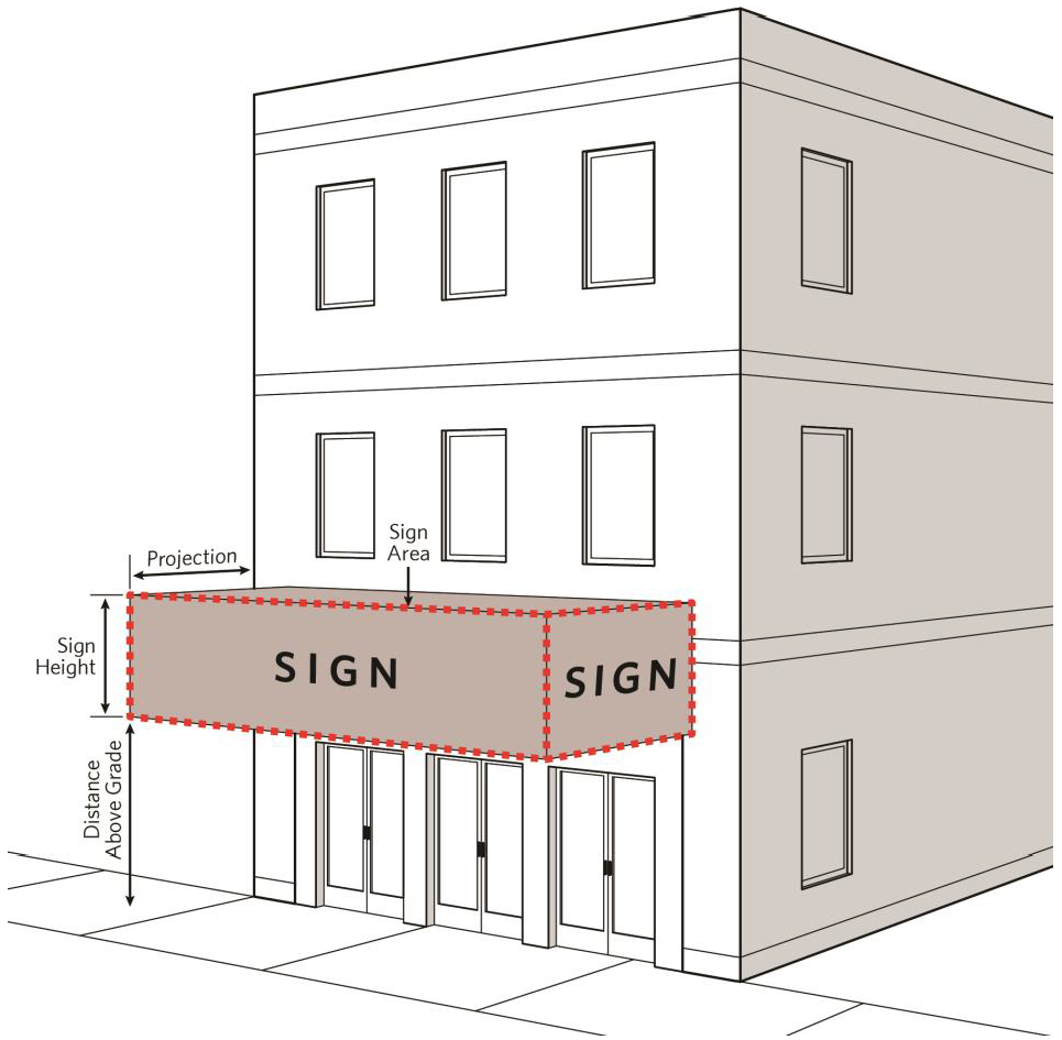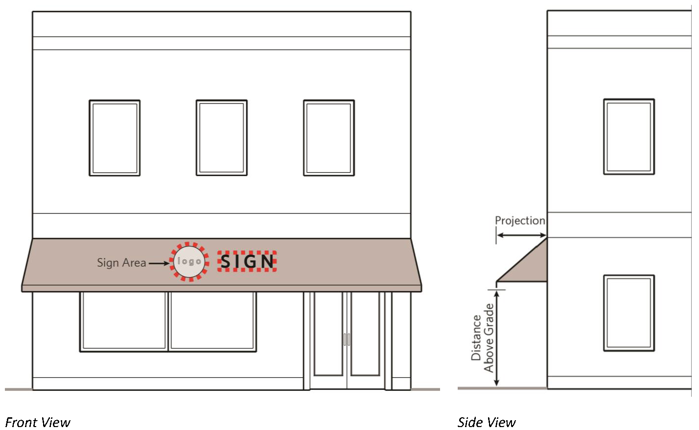 Awning Signs. Awnings that do not display signs are not subject to the regulations of this Section. Refer to Figure VII-4-A. Awning Sign.