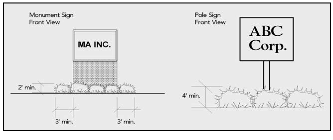 NOTE: There shall be only one (1) ground sign per lot, whether monument or pole ground sign, except that on a corner lot two (2) monument ground signs, one facing each street, shall be permitted. There shall be only one (1) ground sign per lot, whether pole or monument ground sign, except that on a corner lot one (1) additional pole ground sign shall be permitted for each street frontage of two-hundred (200) feet or more.