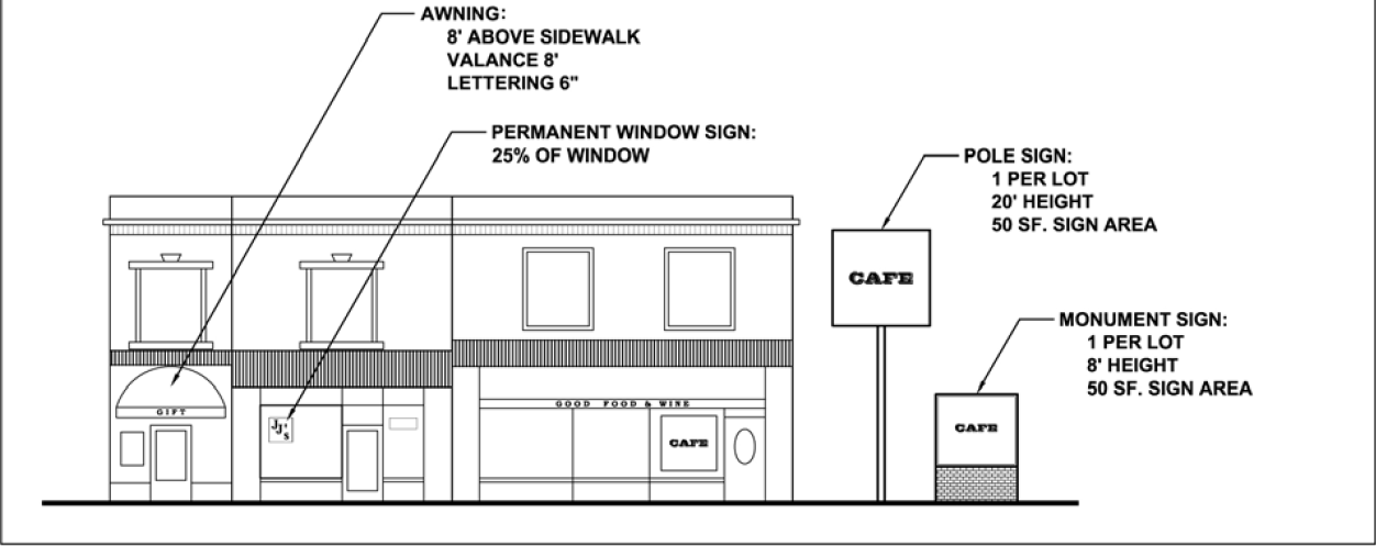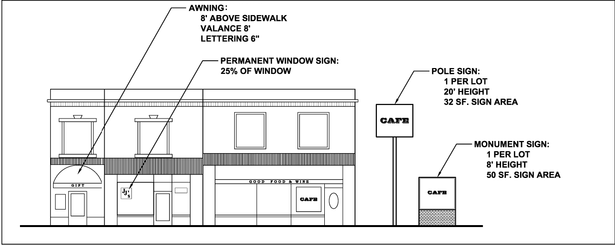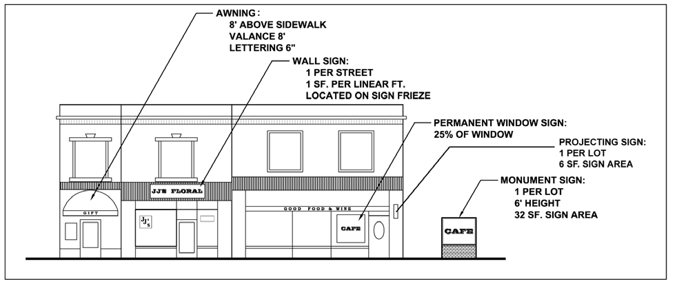 FIGURES 32A—C: PERMANENT SIGN REGULATIONS FOR BUSINESS DISTRICTS