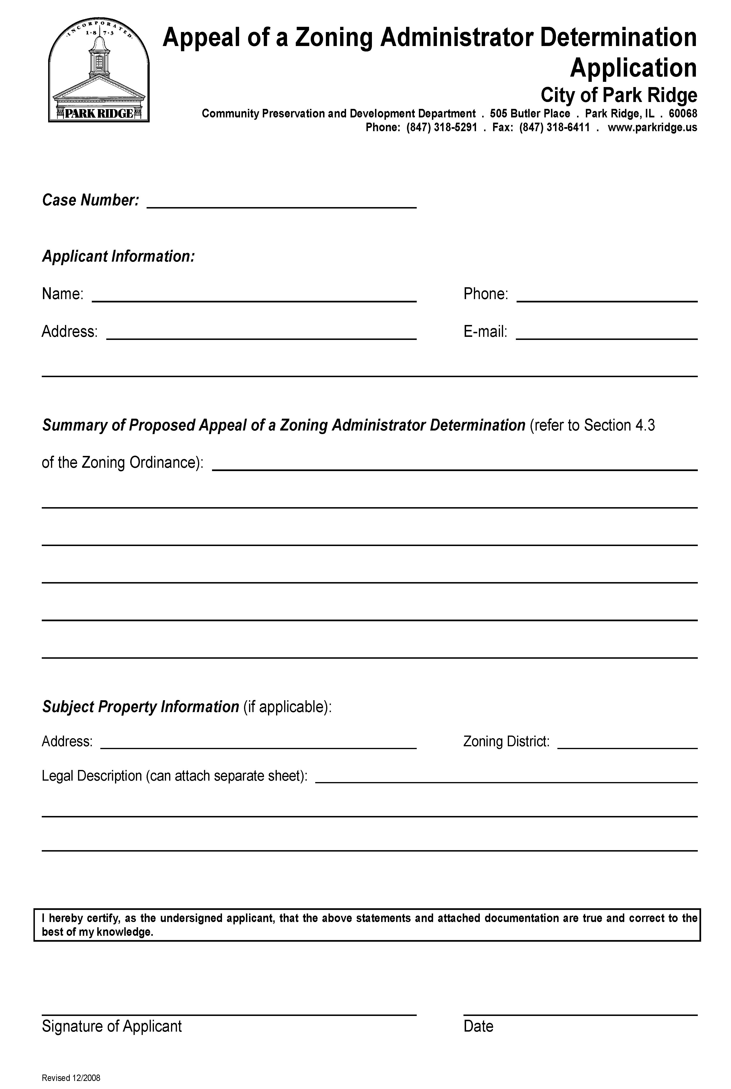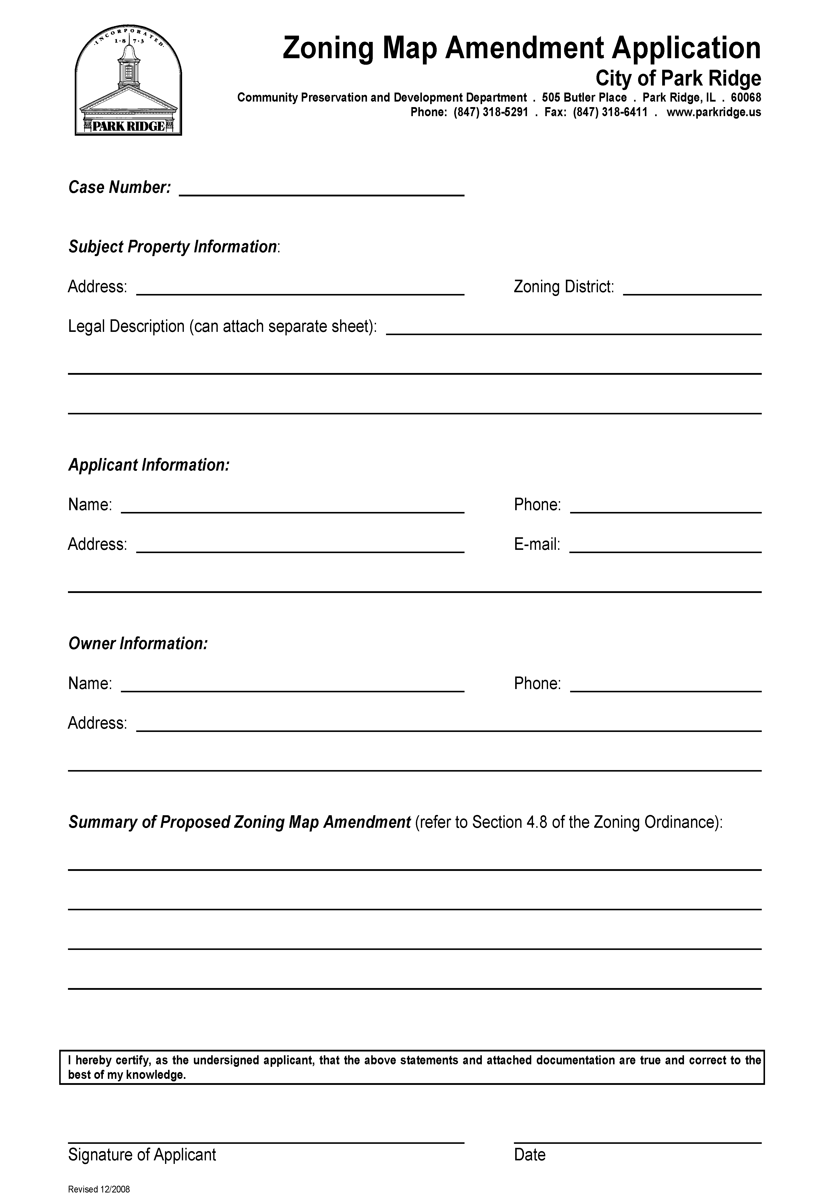 Fee. A check for $450 payable to the City of Park Ridge shall accompany each application. This includes a $400 application fee and $50 for a Zoning Sign.
