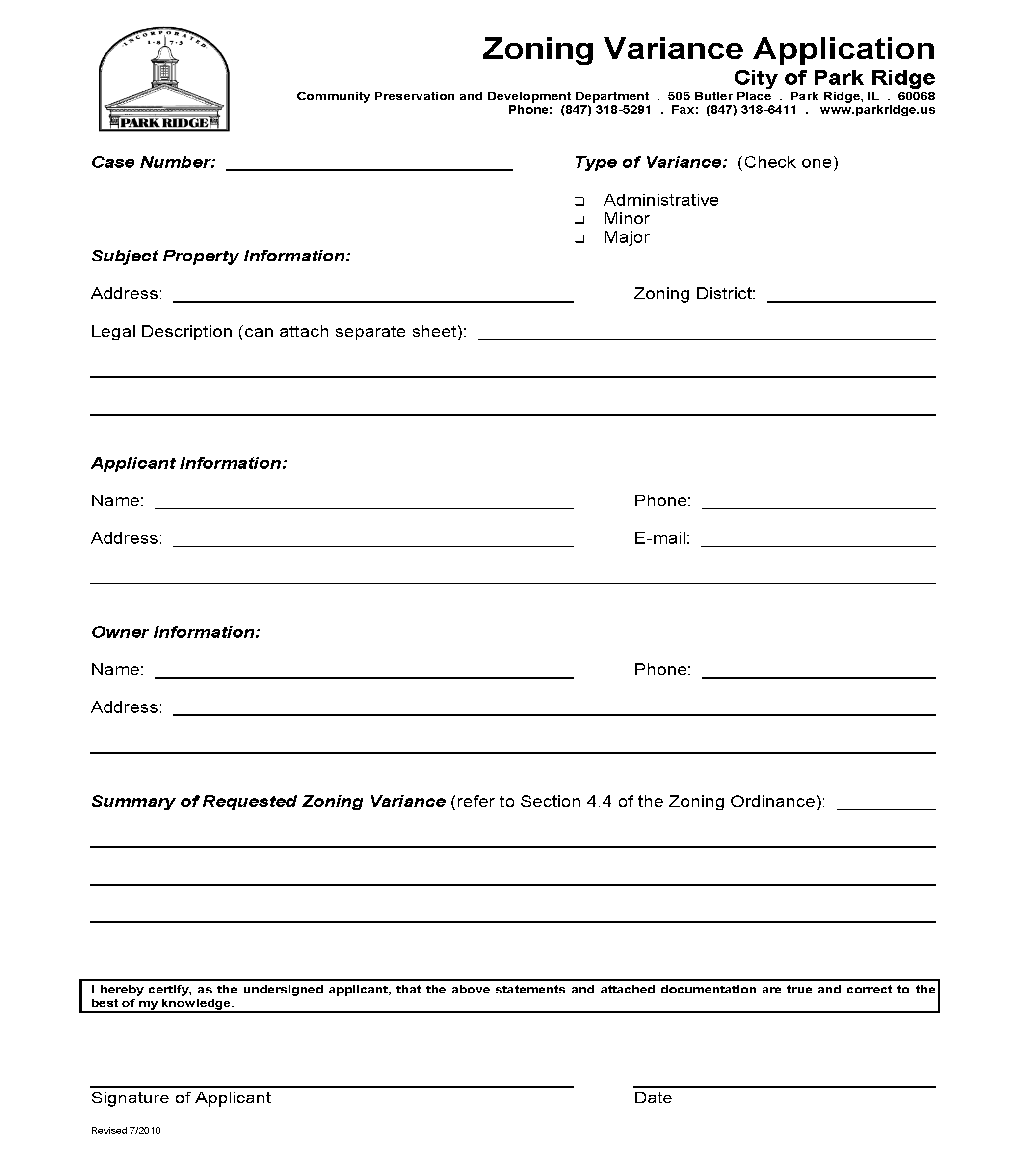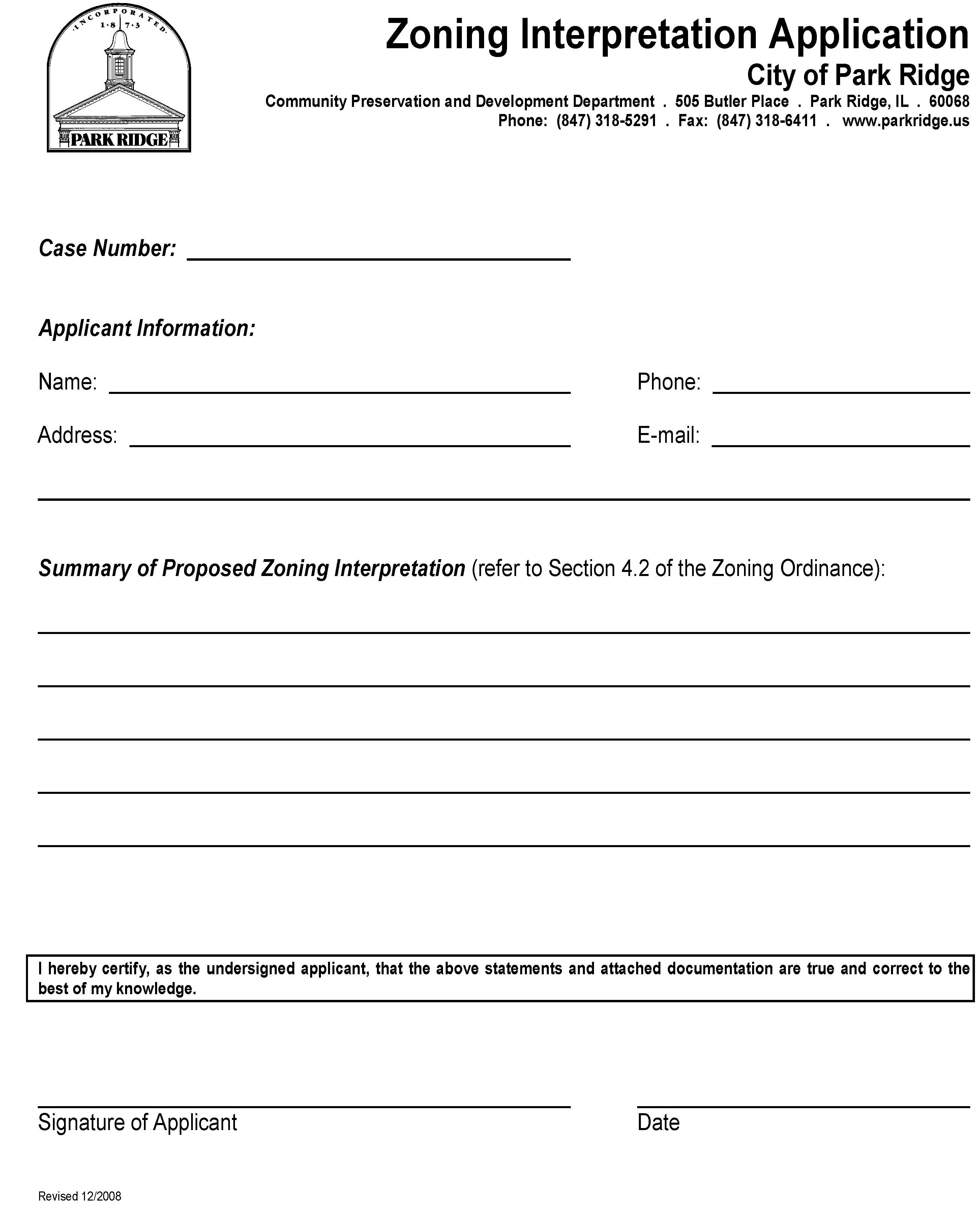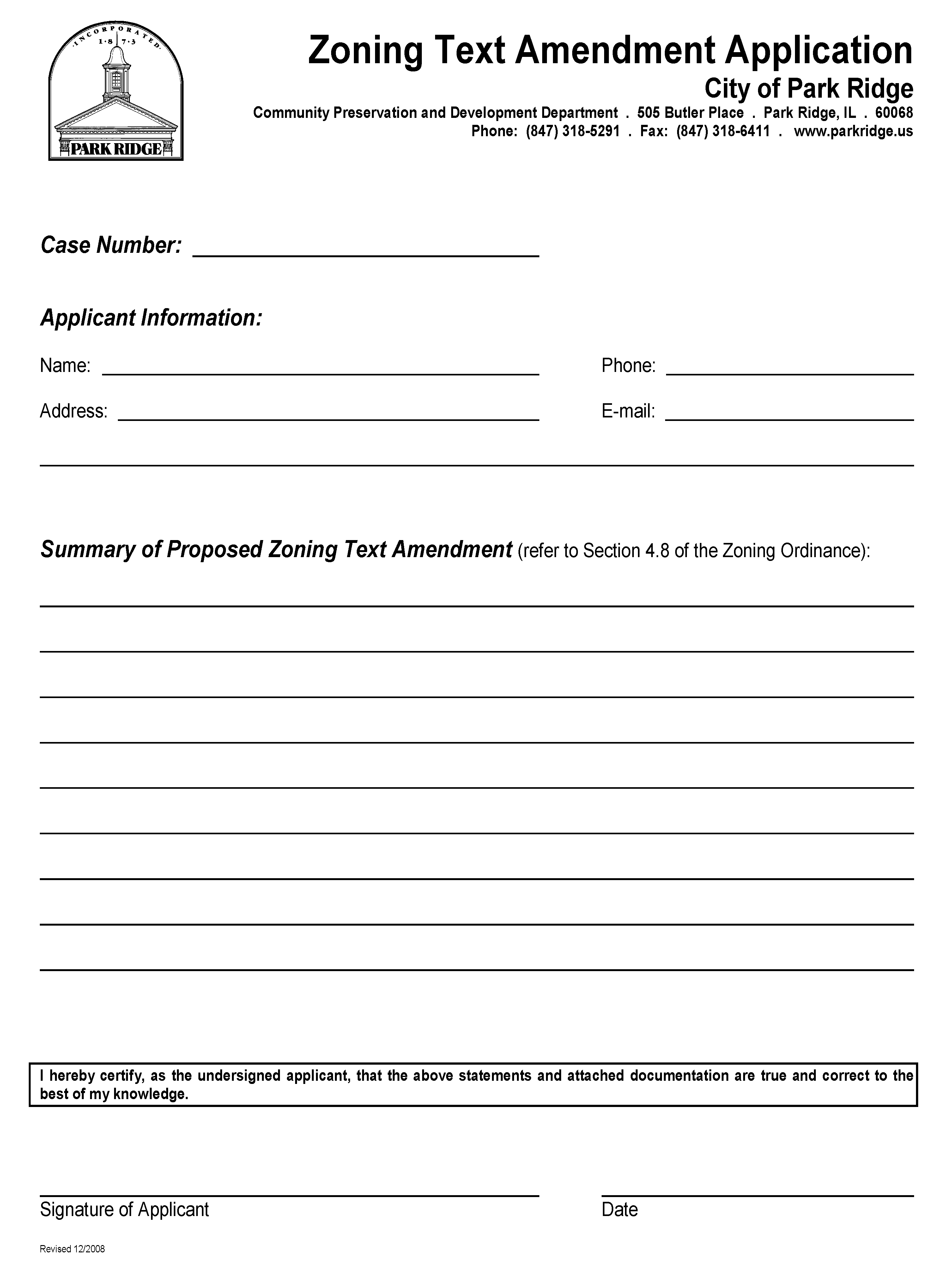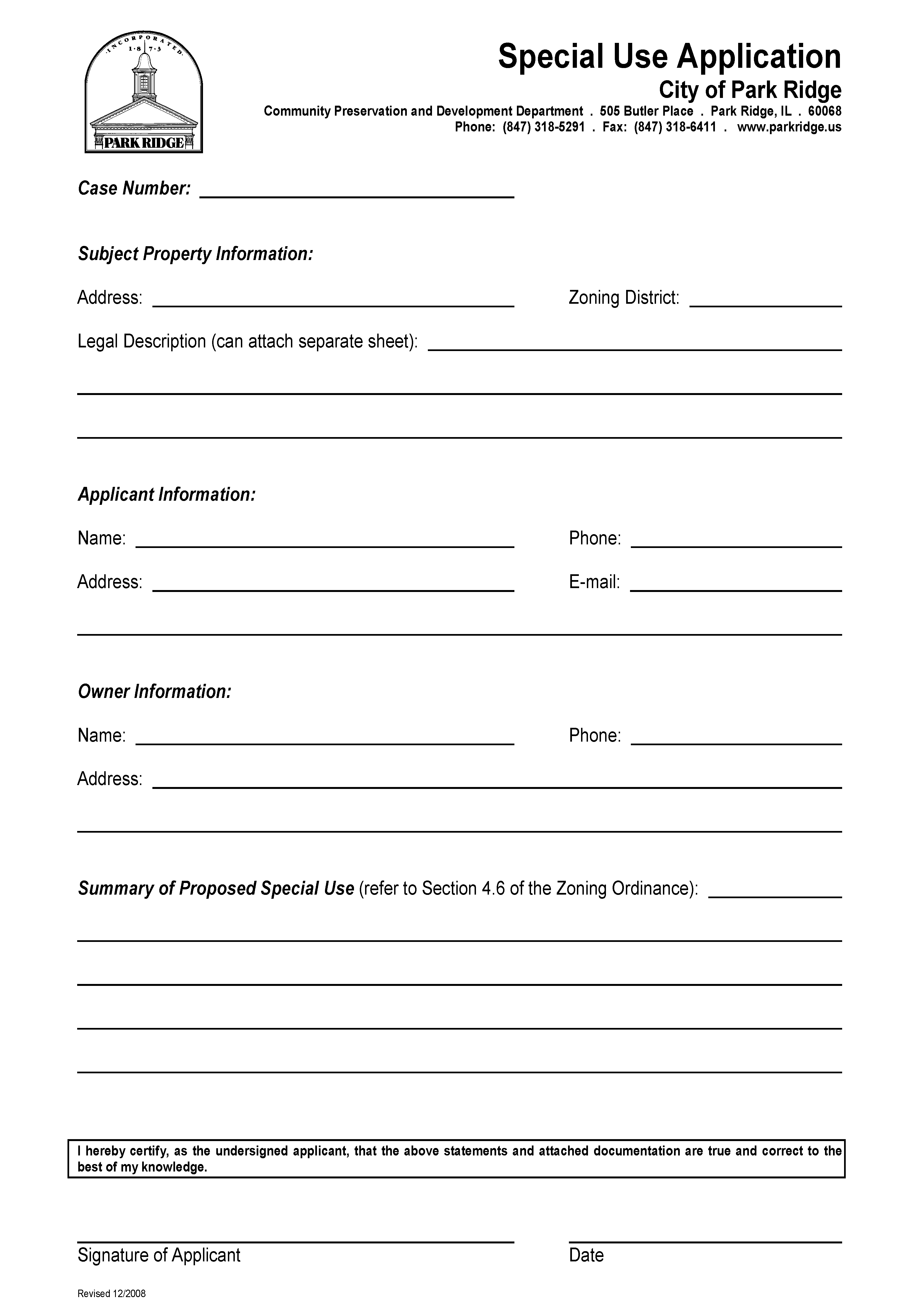 Fee. A check for $100 payable to the City of Park Ridge shall accompany the application.