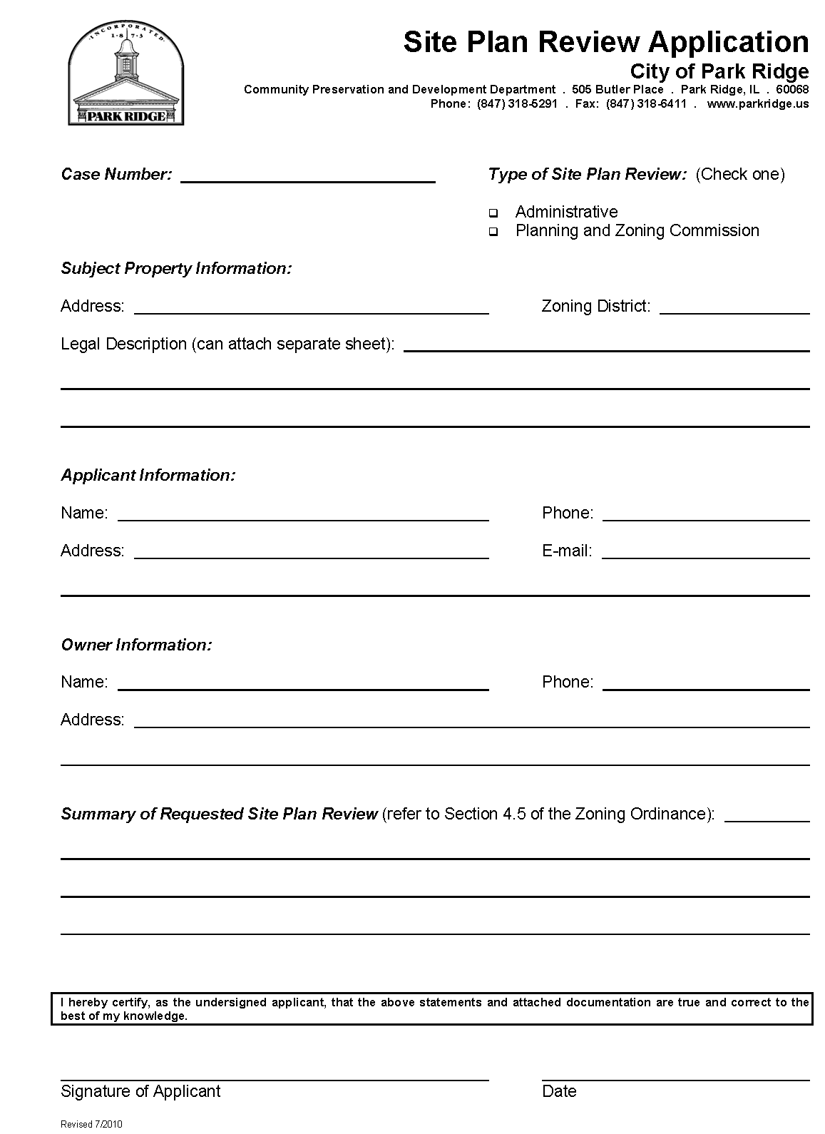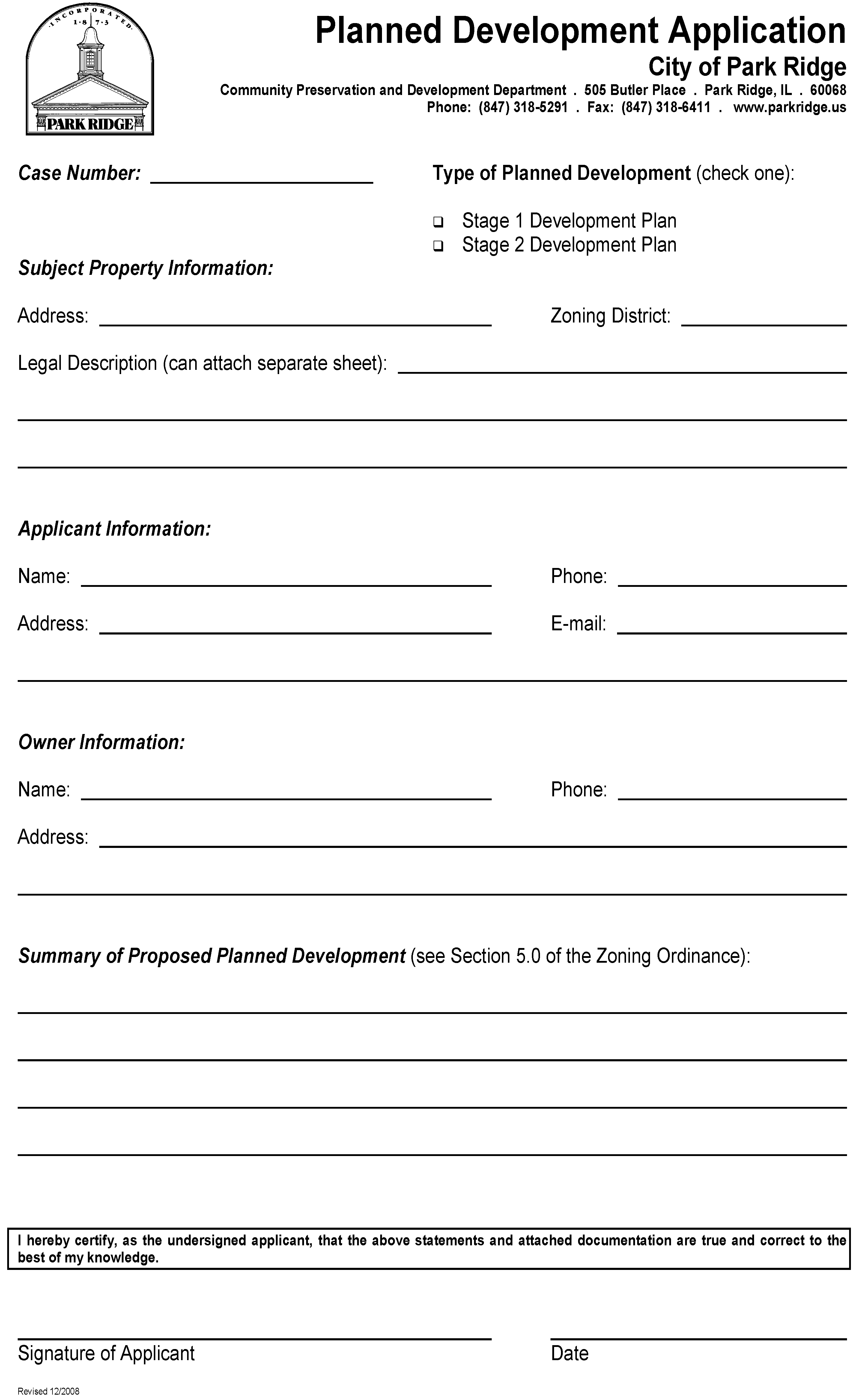 Fee. A check for $300 payable to the City of Park Ridge shall accompany the application.