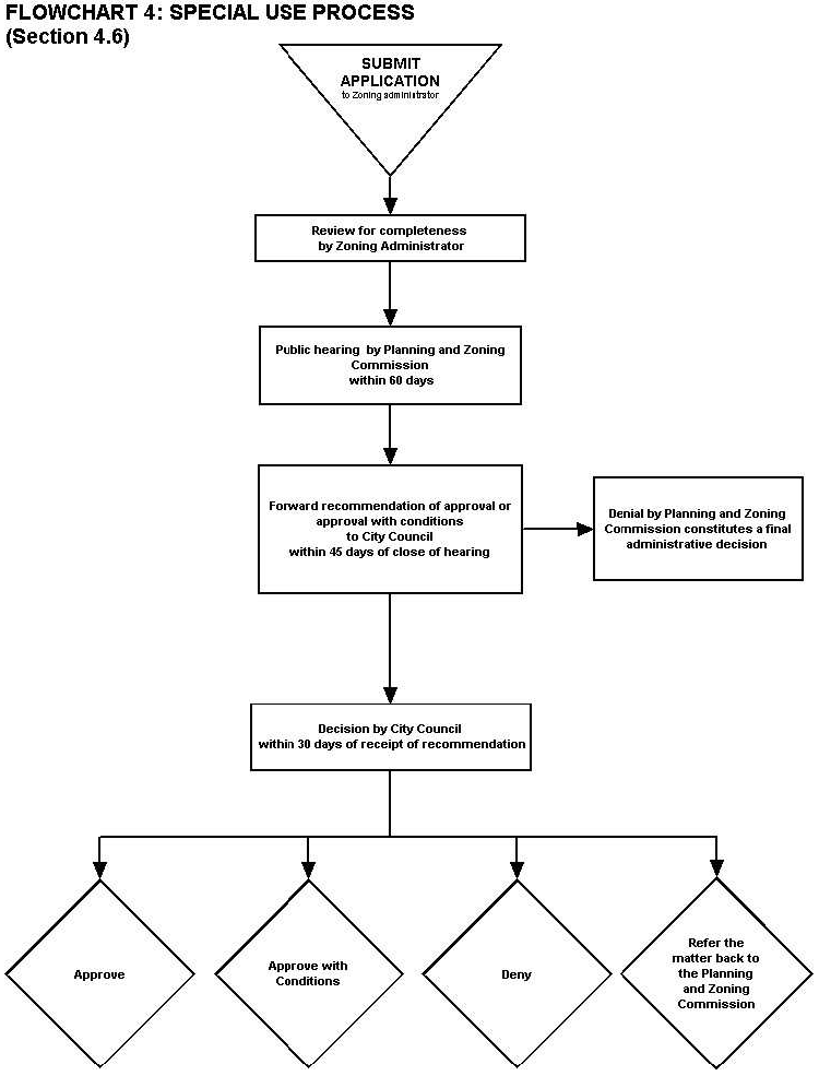 The application must be completed in accordance with the provisions in Section 3.2 of the Zoning Ordinance and Section 4.6 for special uses. The application must be accompanied by the following, unless specifically waived by the Zoning Administrator.