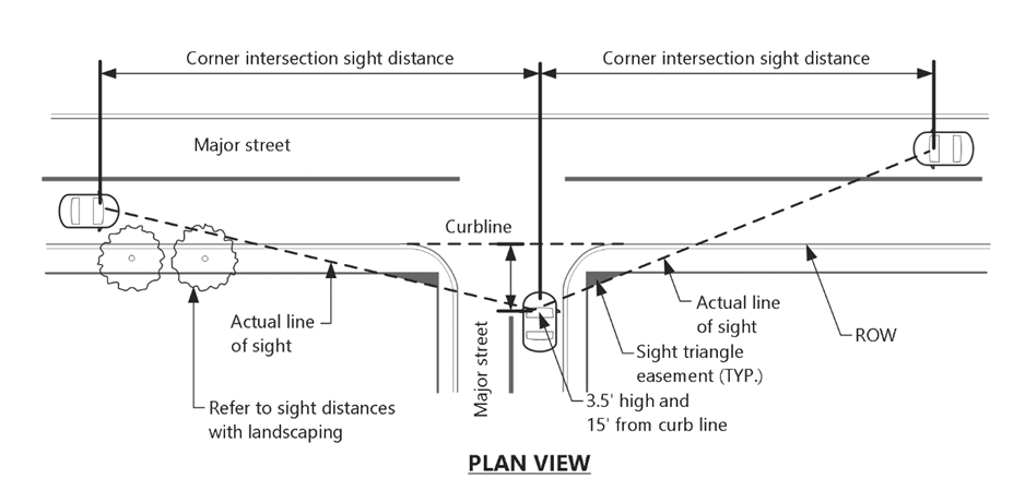 The mobile business must be parked outside of any designated fire lane and outside the corner intersection sight distance as required by the Roadway Design and Construction Criteria Manual. See Figure 05.1 below.