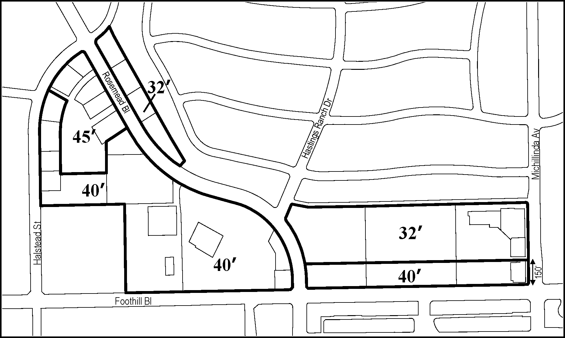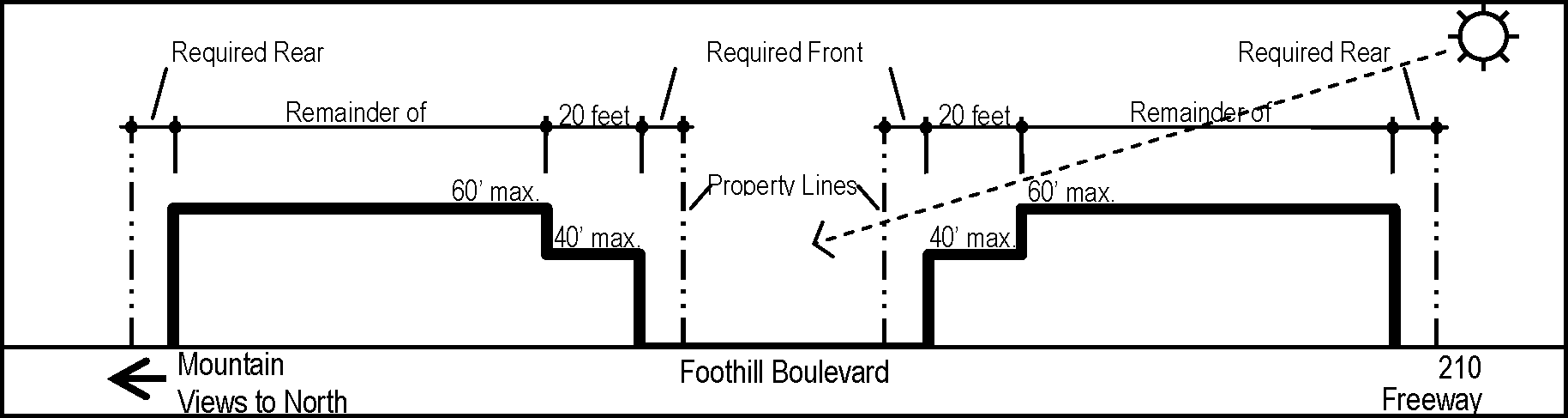 On sites with frontages on both Foothill Boulevard and Walnut Street, projects shall provide pedestrian pathways on both frontages.