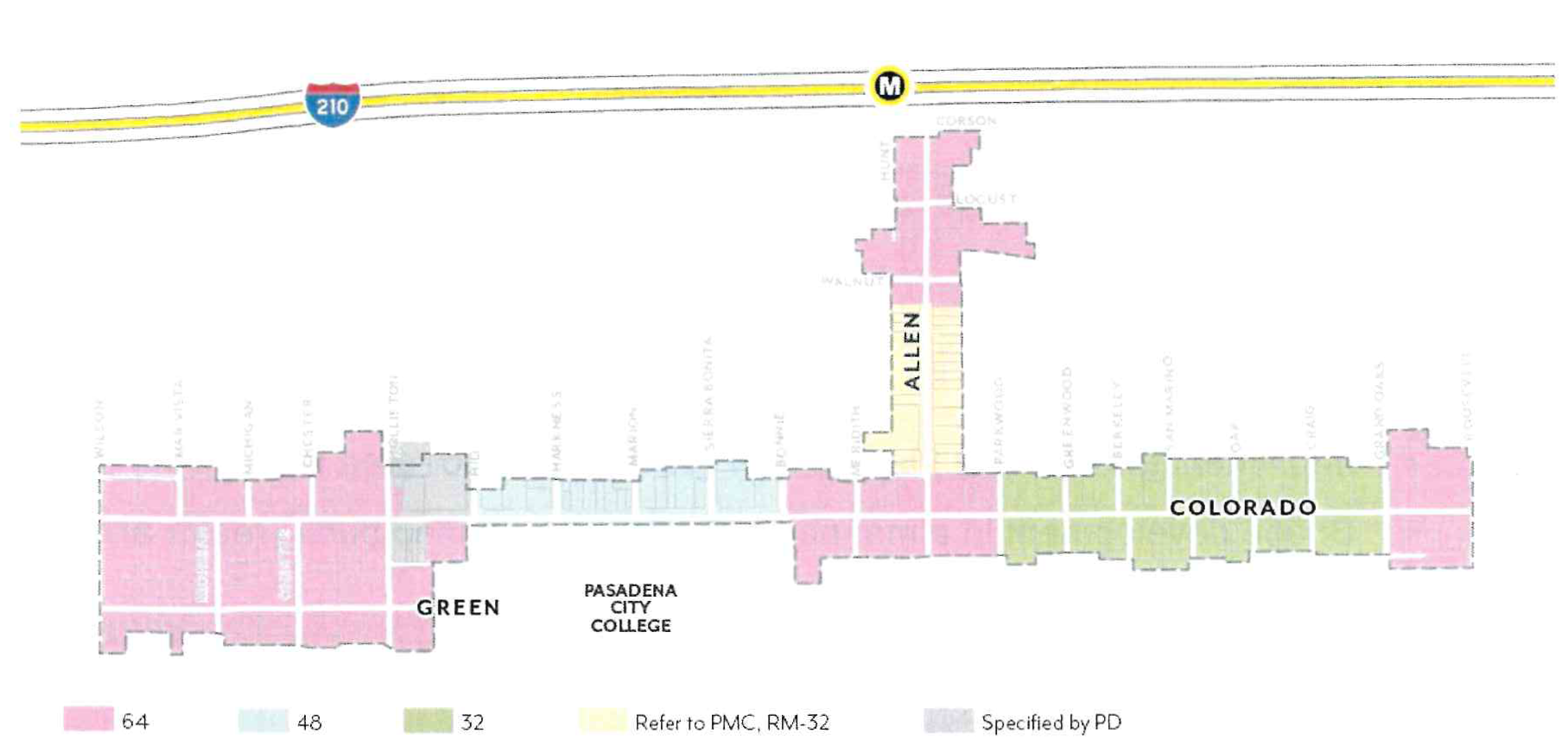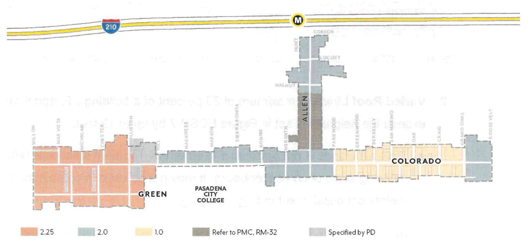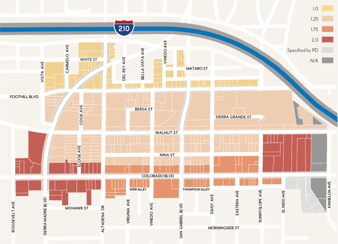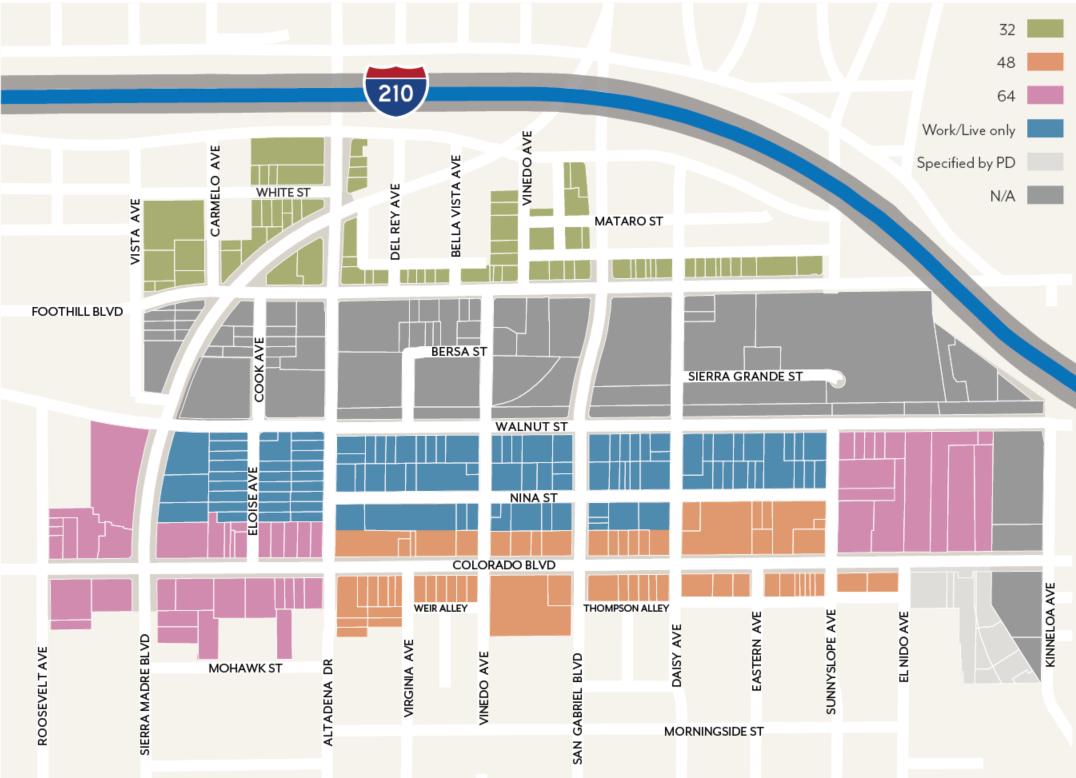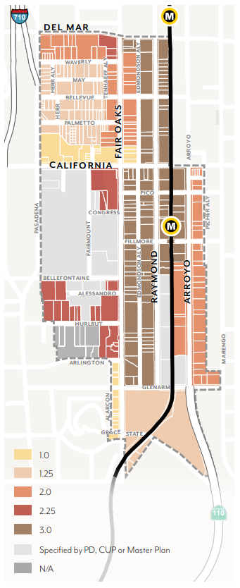 Effectively plan for the utilization of the light rail stations at Allen Avenue and Sierra Madre Villa at the 210 Freeway through the establishment of special development standards in these light rail "nodes".