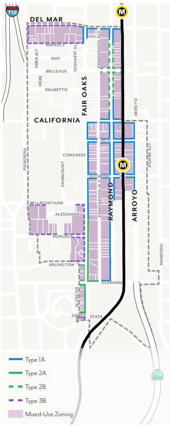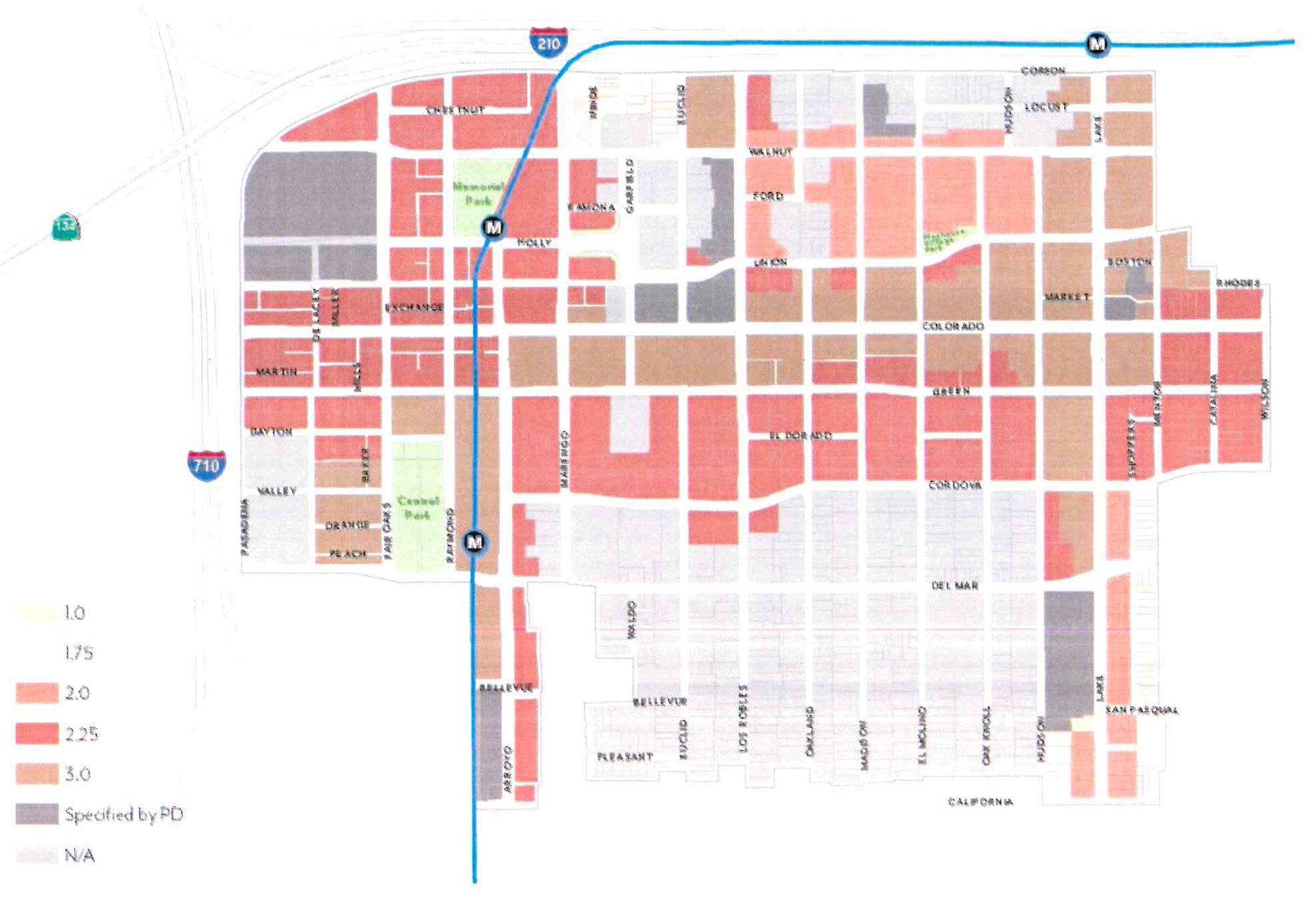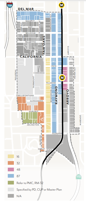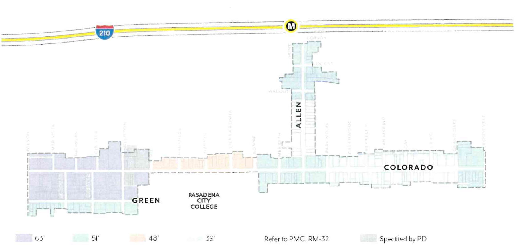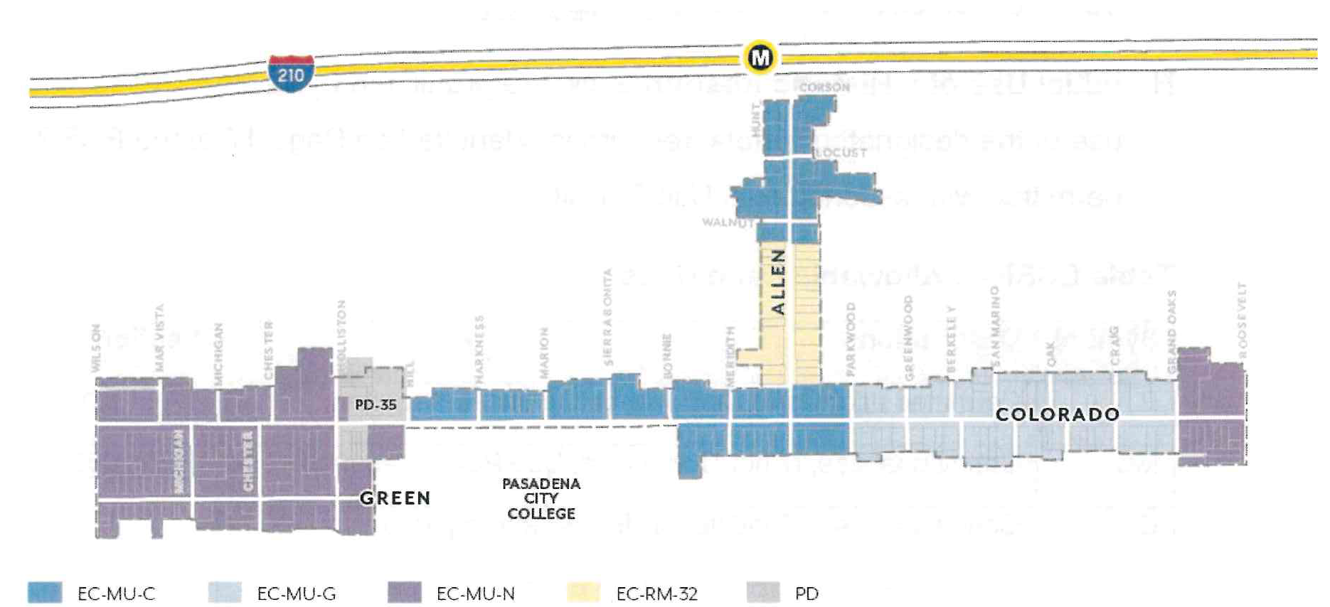 Effectively plan for the utilization of the light rail stations at Allen Avenue and Sierra Madre Villa at the 210 Freeway through the establishment of special development standards in these light rail "nodes".