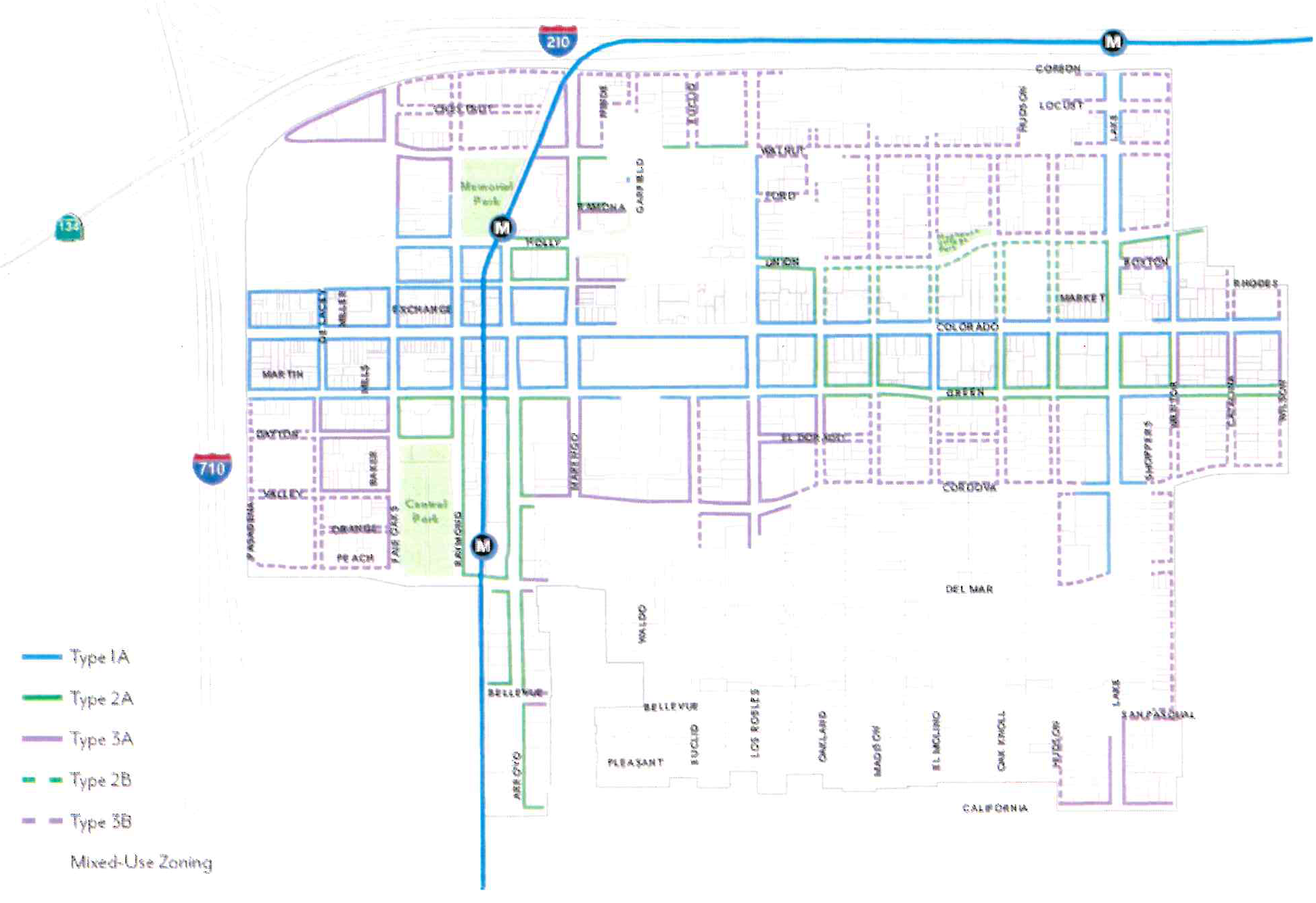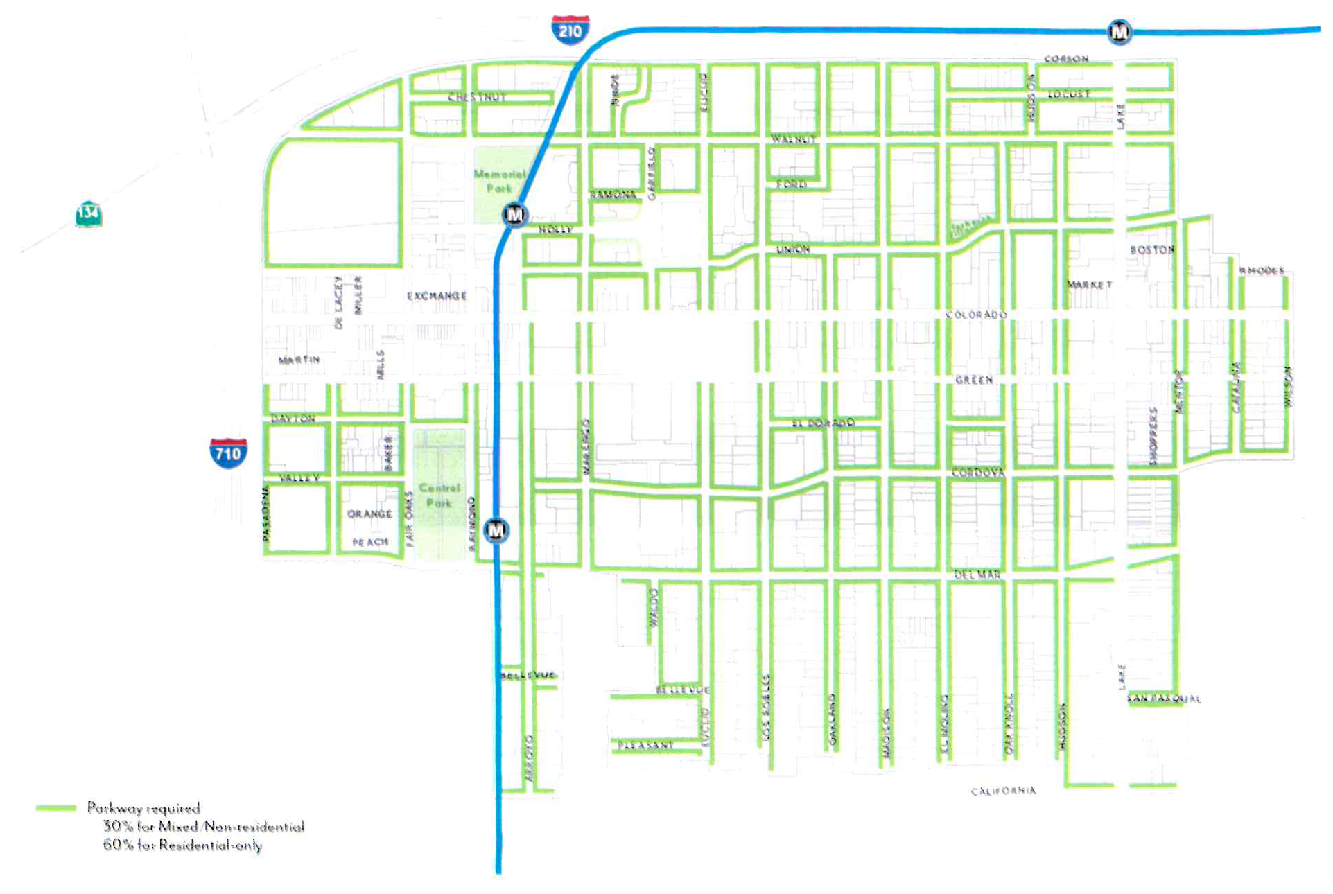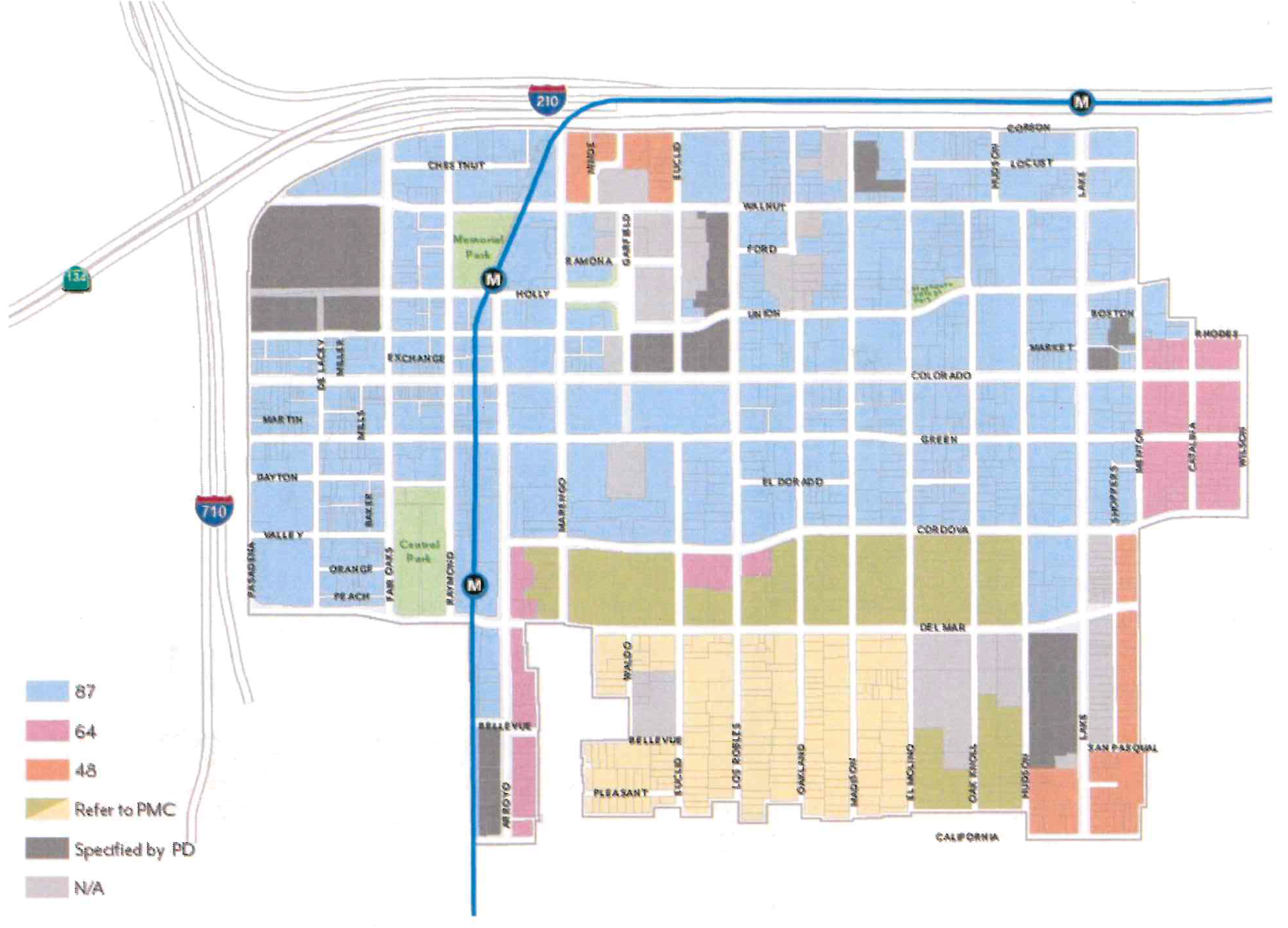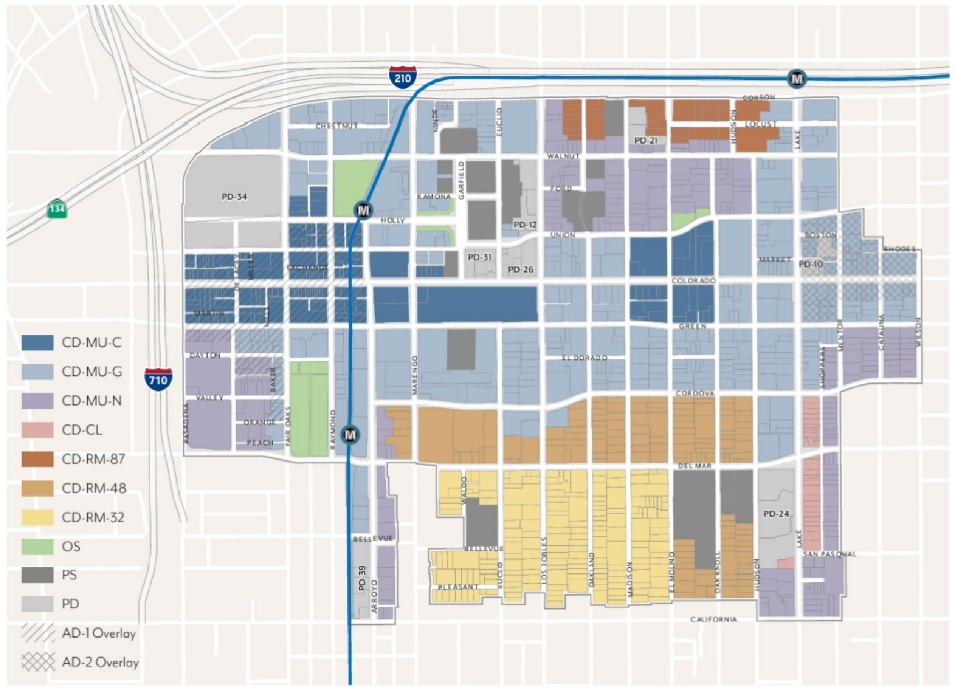 Effectively plan for the utilization of the light rail stations at Allen Avenue and Sierra Madre Villa at the 210 Freeway through the establishment of special development standards in these light rail "nodes".