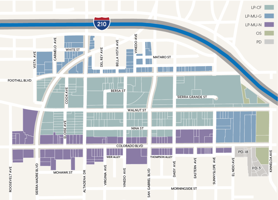 Retain the eclectic mix of uses and protect the vitality of small, independent businesses. Uphold Colorado Boulevard as a location for specialty and niche retail businesses.