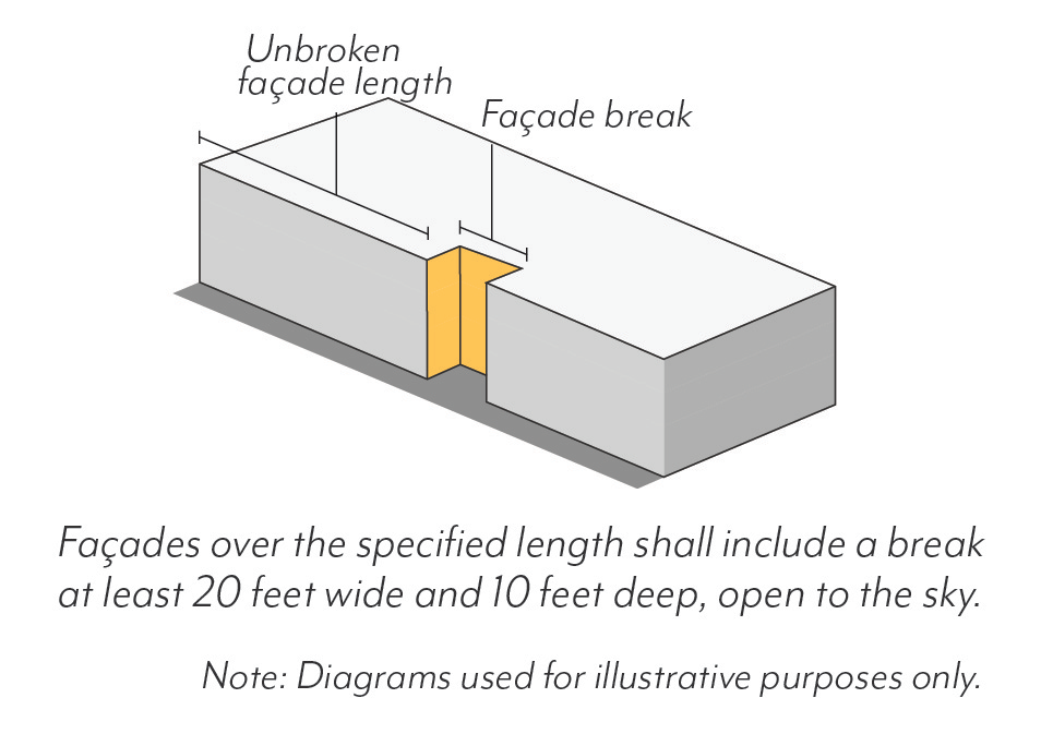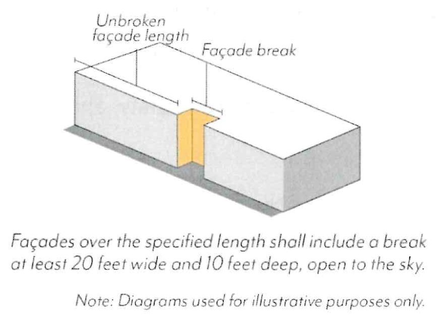 Blank Façades. Windowless expanses of street-facing façades shall not exceed 20 feet in length.