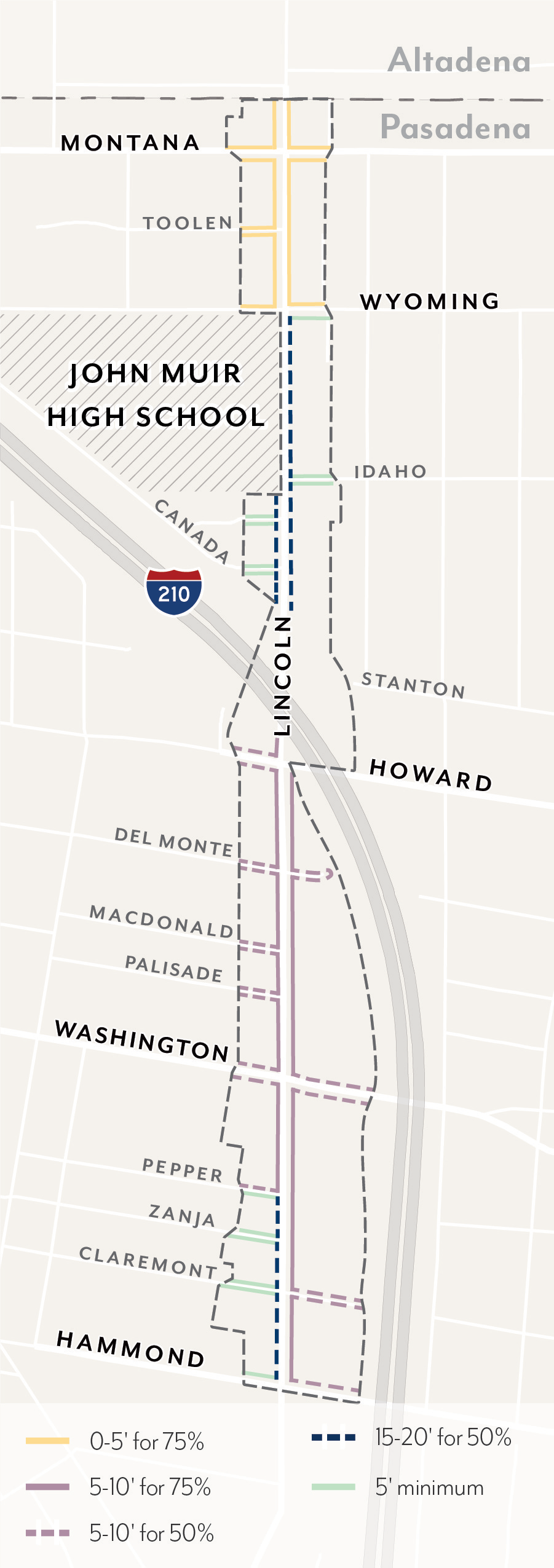 Increase shade, carbon sequestration, and stormwater capture by allowing adequate space for street trees and parkways.