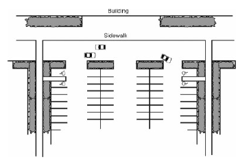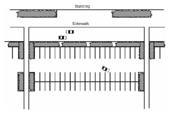 Distance to Parking Spaces and Pedestrian Connection Requirements. The closer shared spaces are to the land uses they serve, the more likely the arrangement will be a success. Shared spaces for residential units must be located within 300 feet of dwelling unit entrances they serve. Shared spaces at other uses must be located within 500 feet of the principal building entrances of all sharing uses. However, up to 20 percent of the spaces may be located greater than 500 feet but less than 1,000 feet from principal entrances. Clear, safe pedestrian connections must be provided. Up to 50 percent of nonresidential spaces may be provided at greater distances if a dedicated shuttle bus or van service is provided from a remote parking facility.
