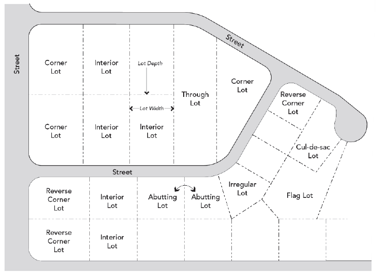 Street Side Setback. For a corner lot, the minimum distance required between a structure and a side property line that abuts a public right-of-way.