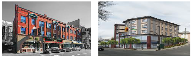 Architectural signs: Architectural signs are integrated into the building fabric and are constructed of permanent materials such as stone or metal. Names and the dates of construction were common signs included on the façade. They were typically located in the roof parapet detailing or in a cornerstone detail. These add a sense of history and place to the character and fabric of the village.