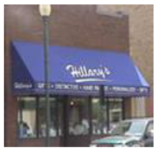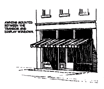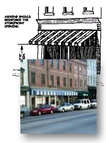 The use of awning valances for signs is encouraged. Six to eight inch letters are sufficient.