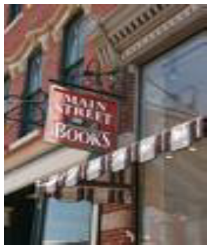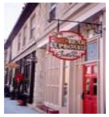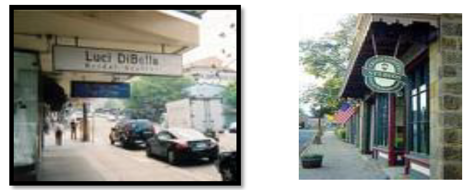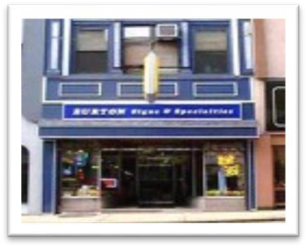 • The storefront sign should be used to display primarily the name of the business only. Use only one line of lettering if possible, leaving out secondary information.