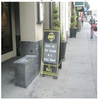 Sidewalk signs are temporary signs used to attract customers but can add vibrancy to a streetscape and expand the presence of a business if the design is creative and thoughtful.