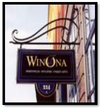 Types of secondary signage include hanging, window, awning, or any sign that is located below the primary sign. If a projected sign is planned, placement will be critical to avoid interferences with adjacent signs and architecture of the storefront itself. These signs should be located below second story window sills and be no less than eight feet above the sidewalk. Window signs should consist of a material and color that contrasts with the display, while being small enough to not interfere with the display area. The use of awning valances for signs is encouraged and is often an integral part of the awning pattern and style.